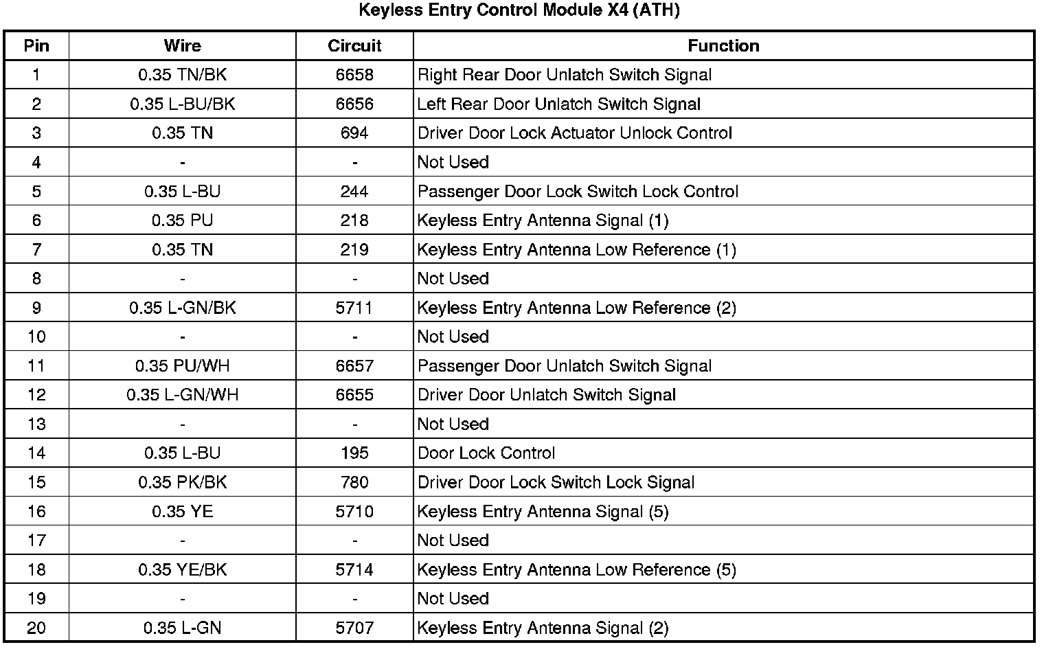 Keyless Entry Control Module X4 (ATH)