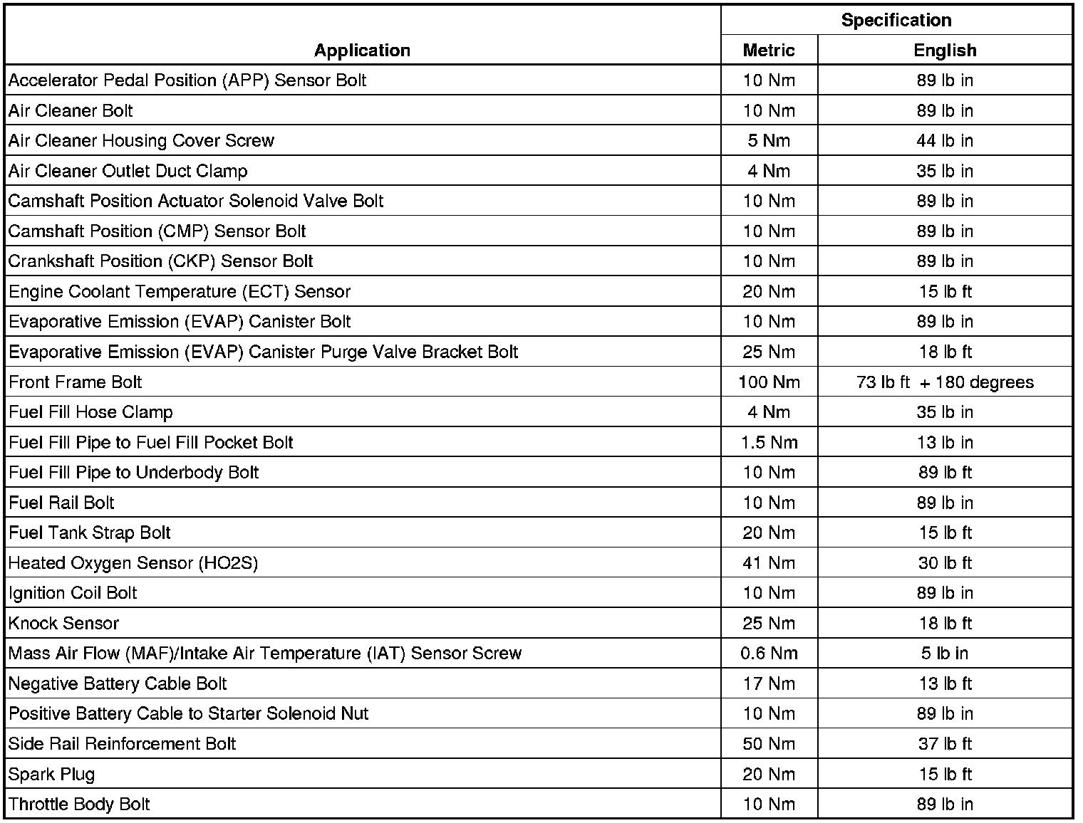 Fastener Tightening Specifications