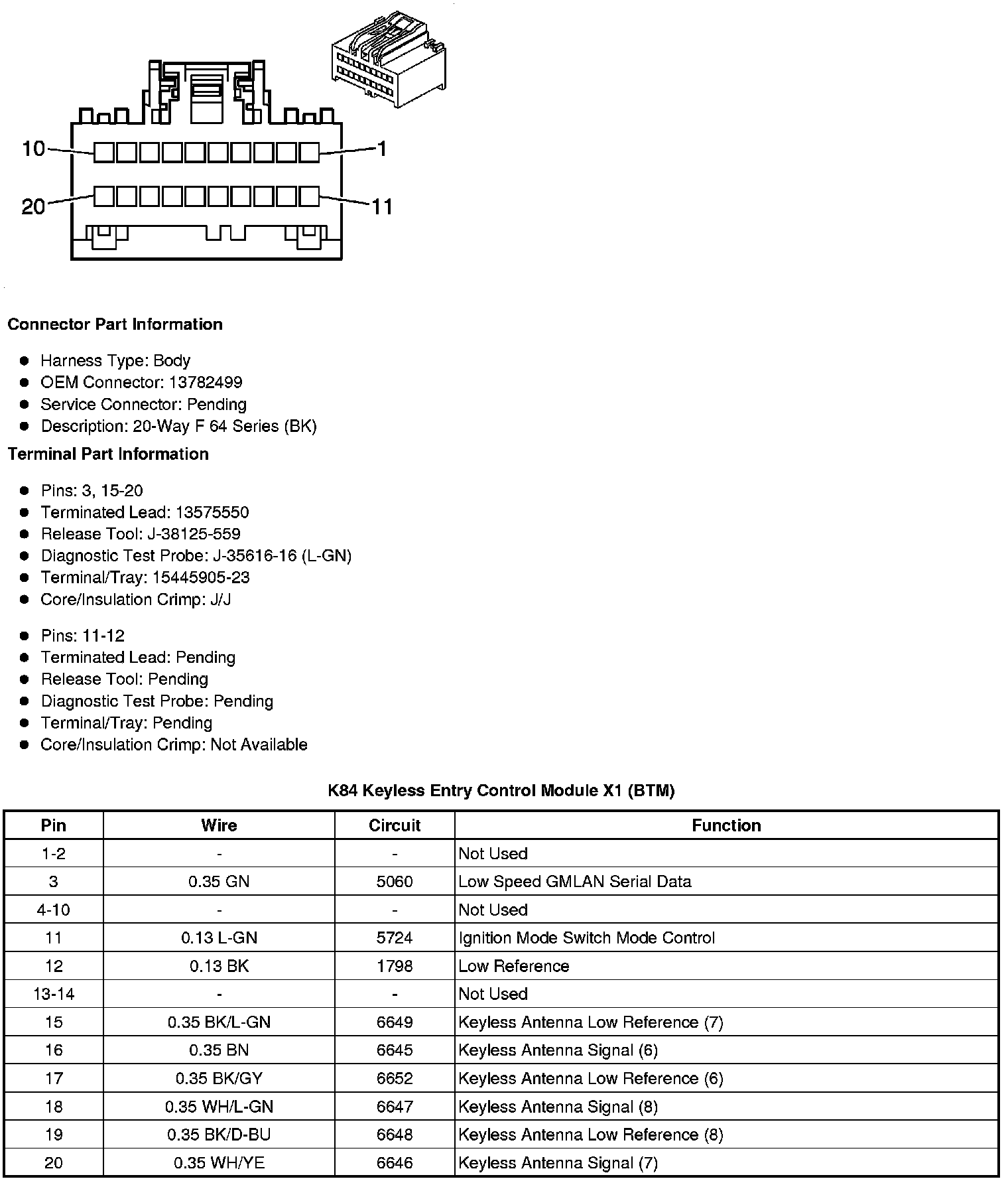 K84 Keyless Entry Control Module X1 (BTM)