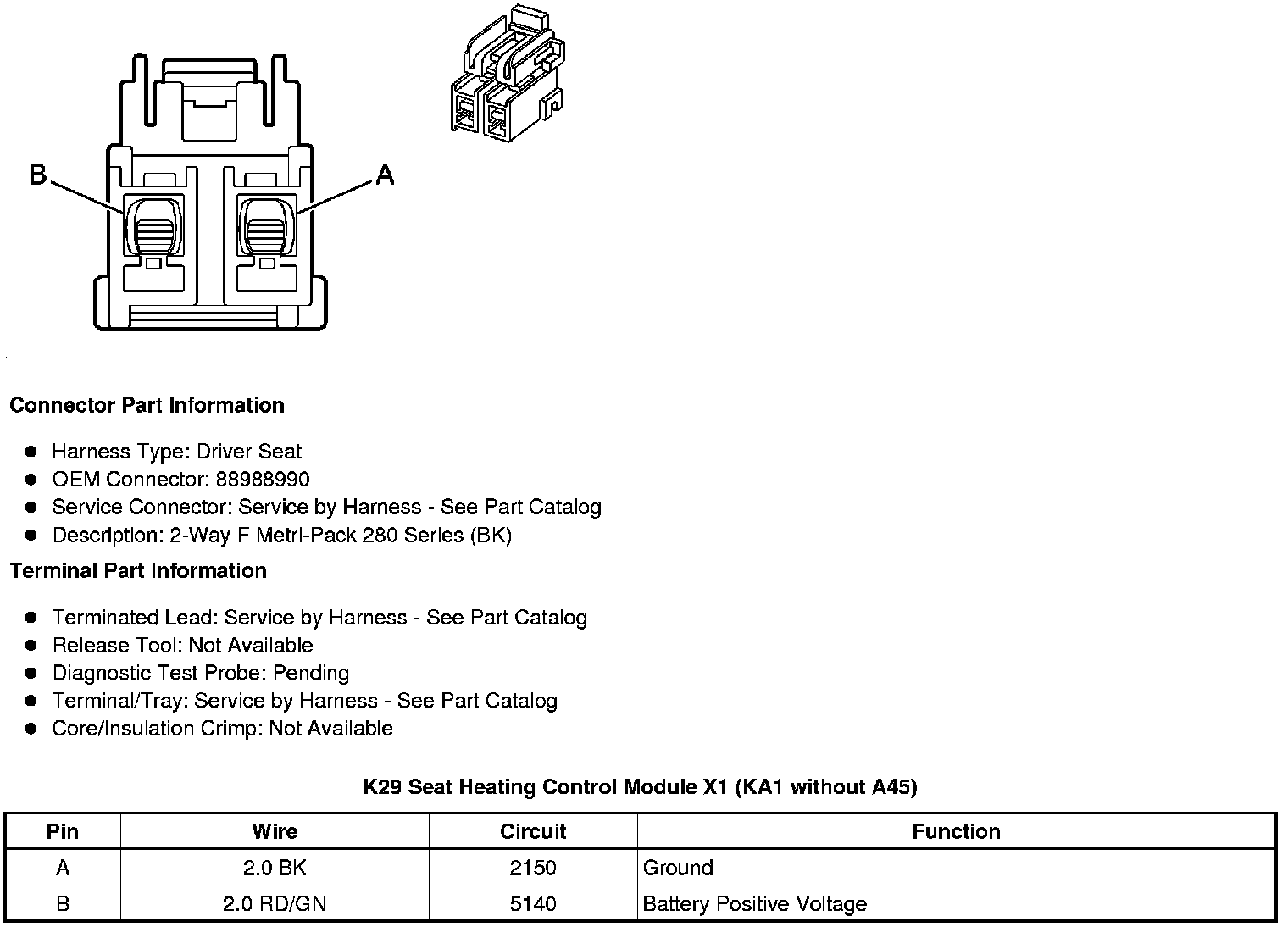 K29 Seat Heating Control Module X2 (KA1 without A45)