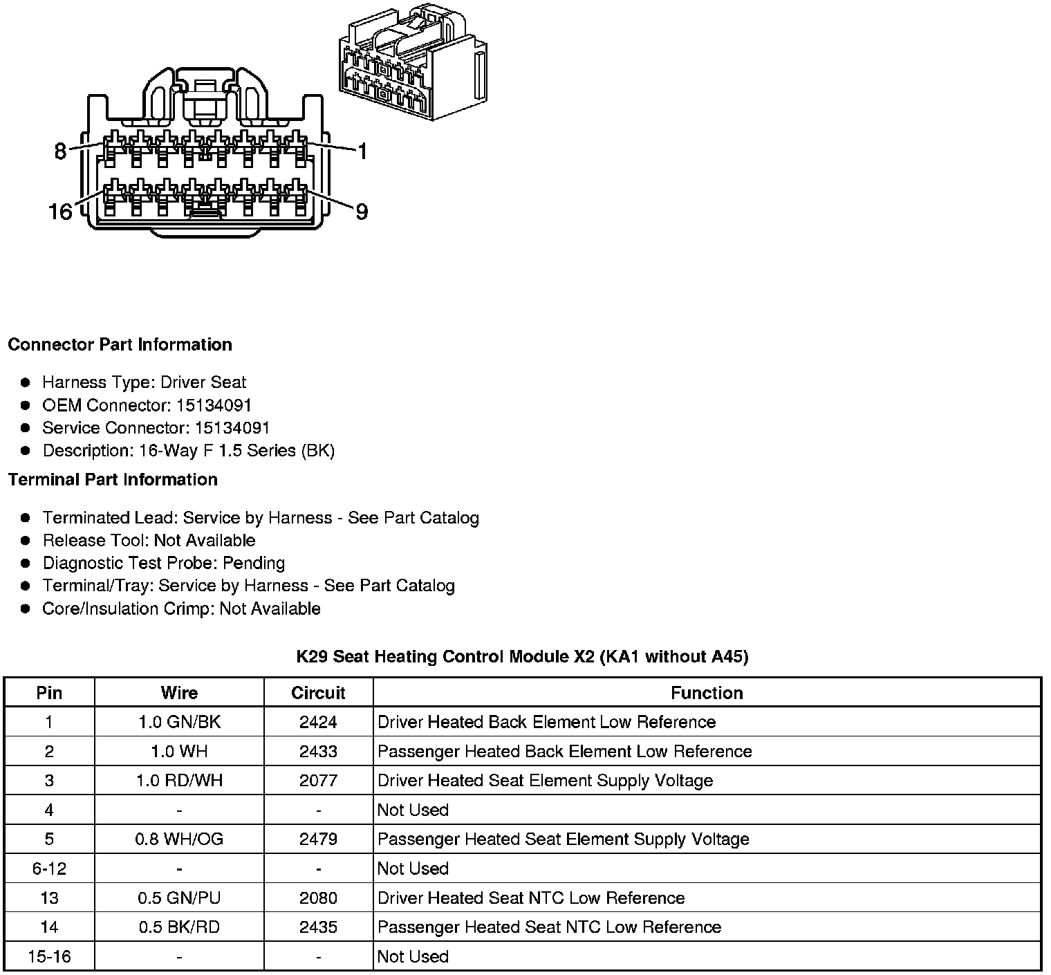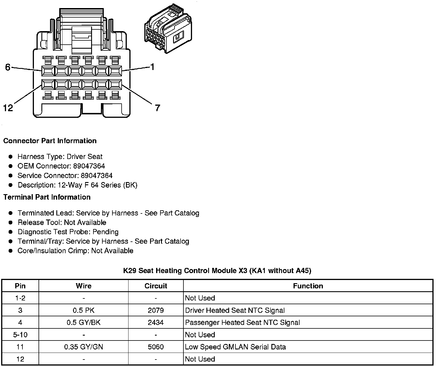 K29 Seat Heating Control Module X1 (KA1 without A45)