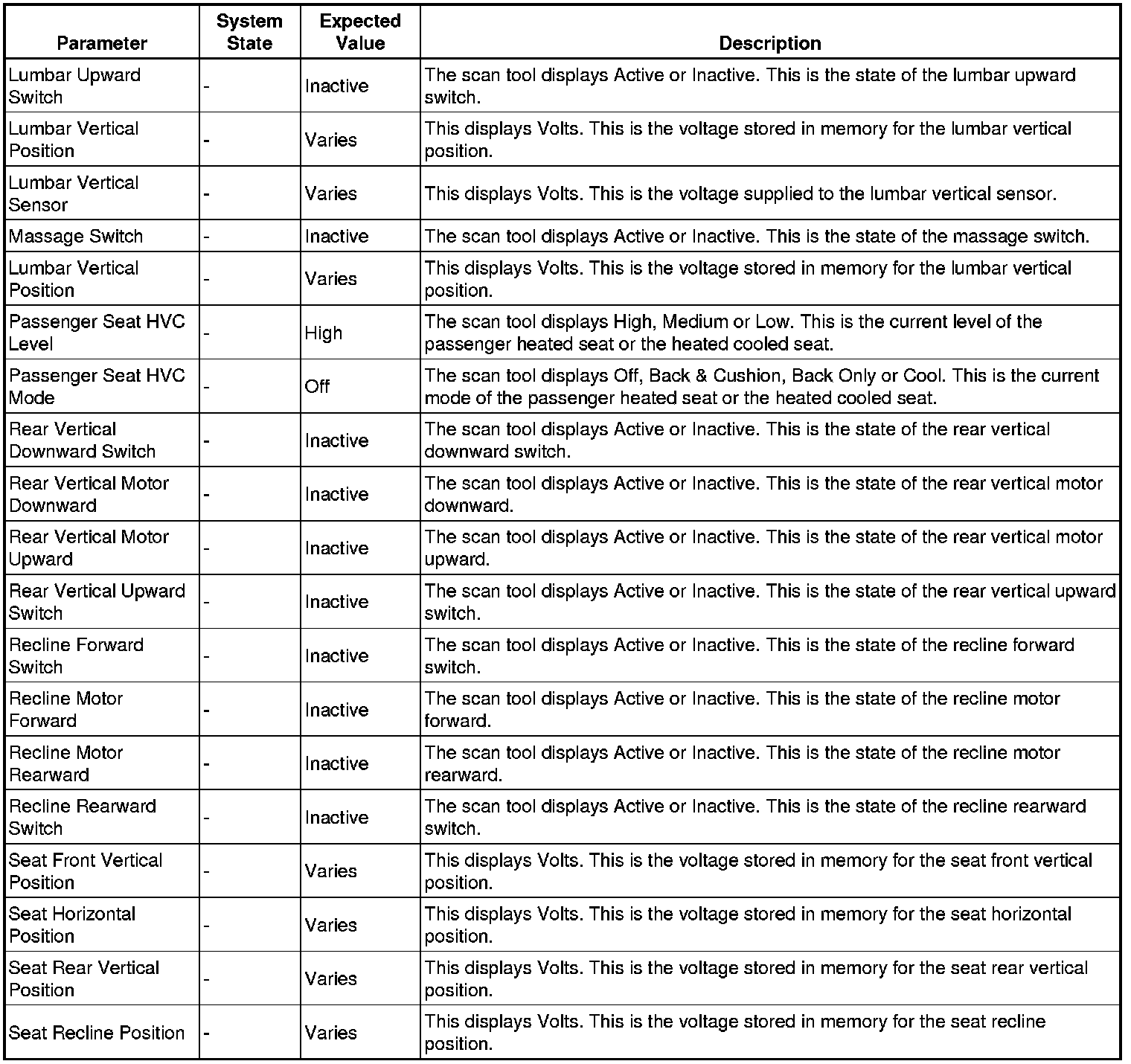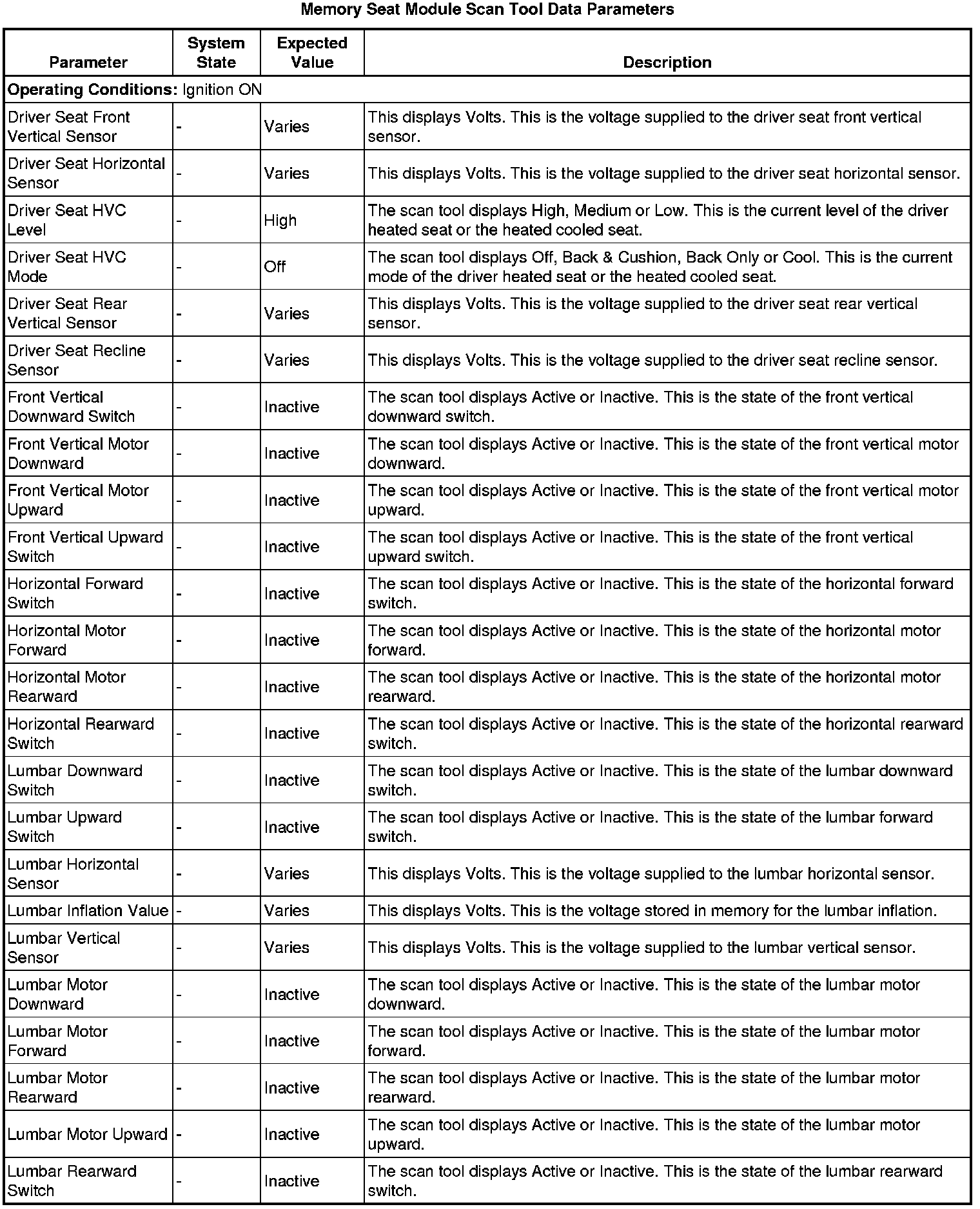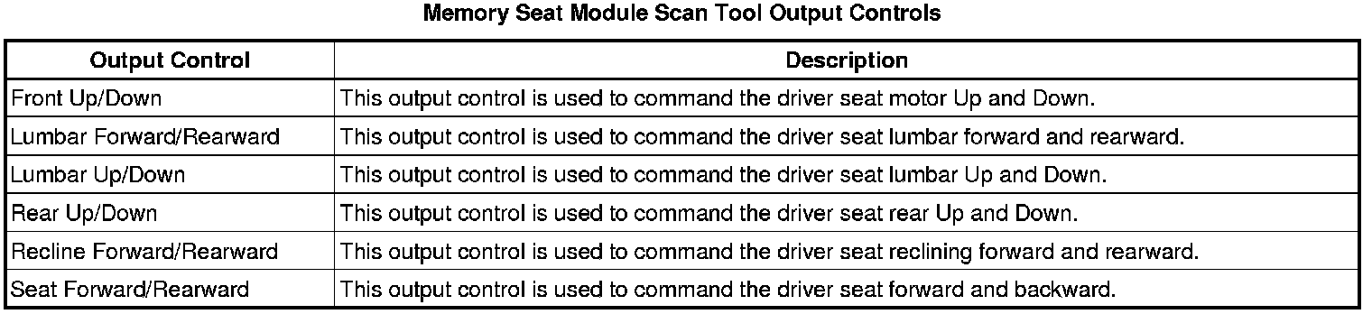 Driver Seat Adjuster Memory Module Scan Tool Information
