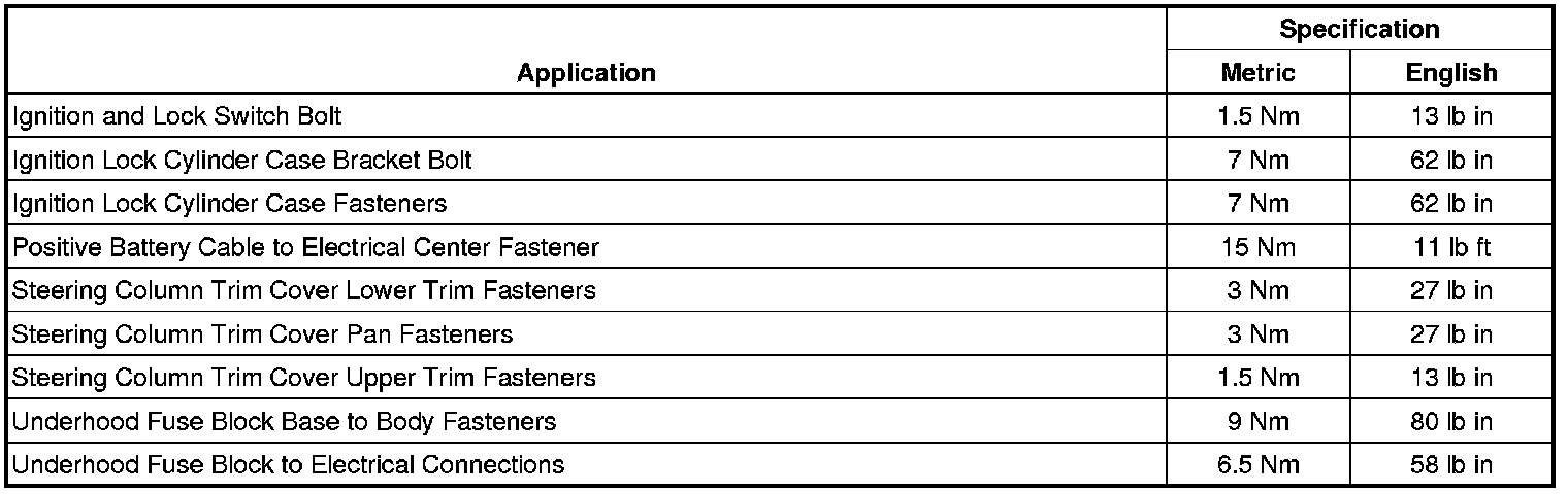 Fastener Tightening Specifications