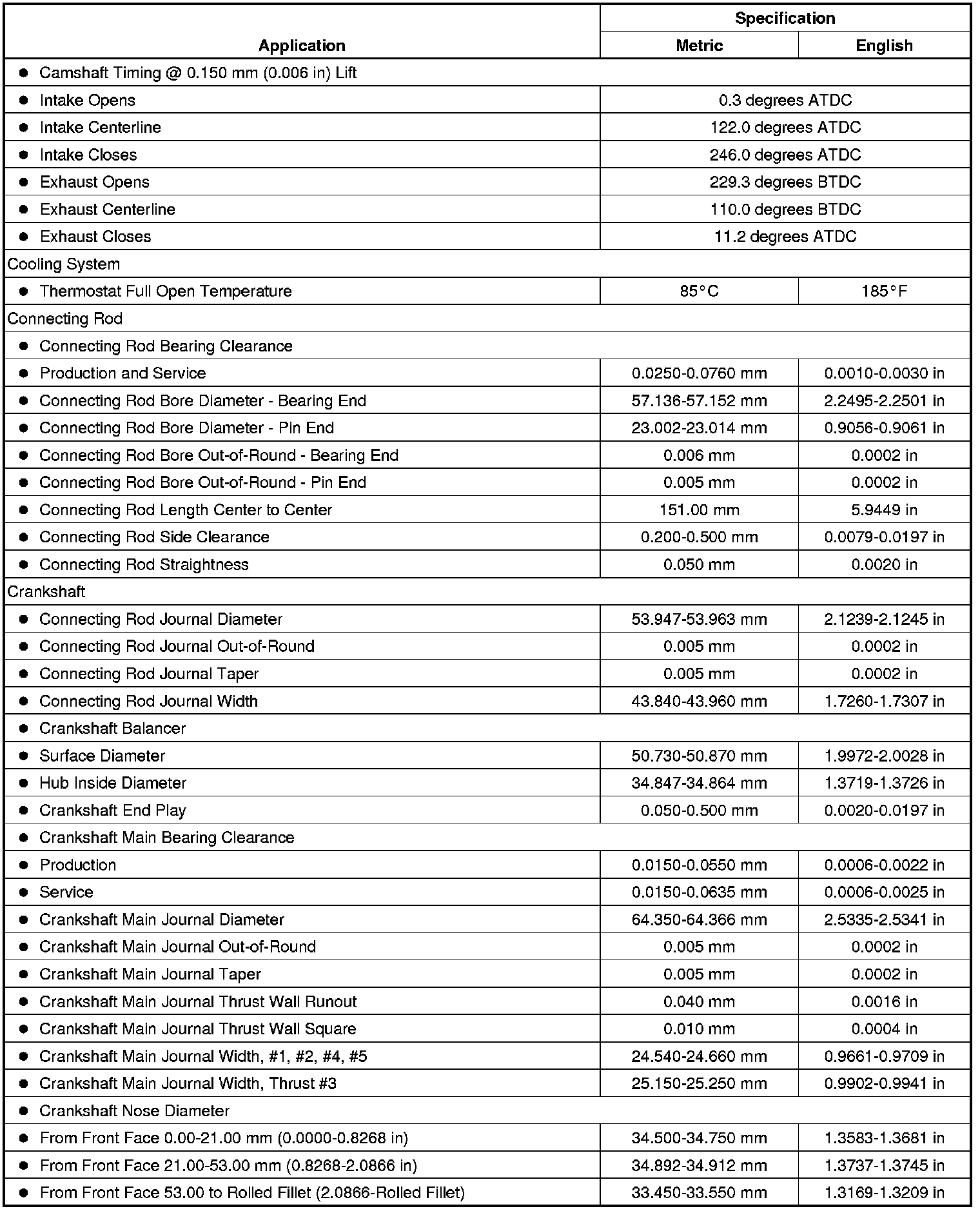 Engine Mechanical Specifications