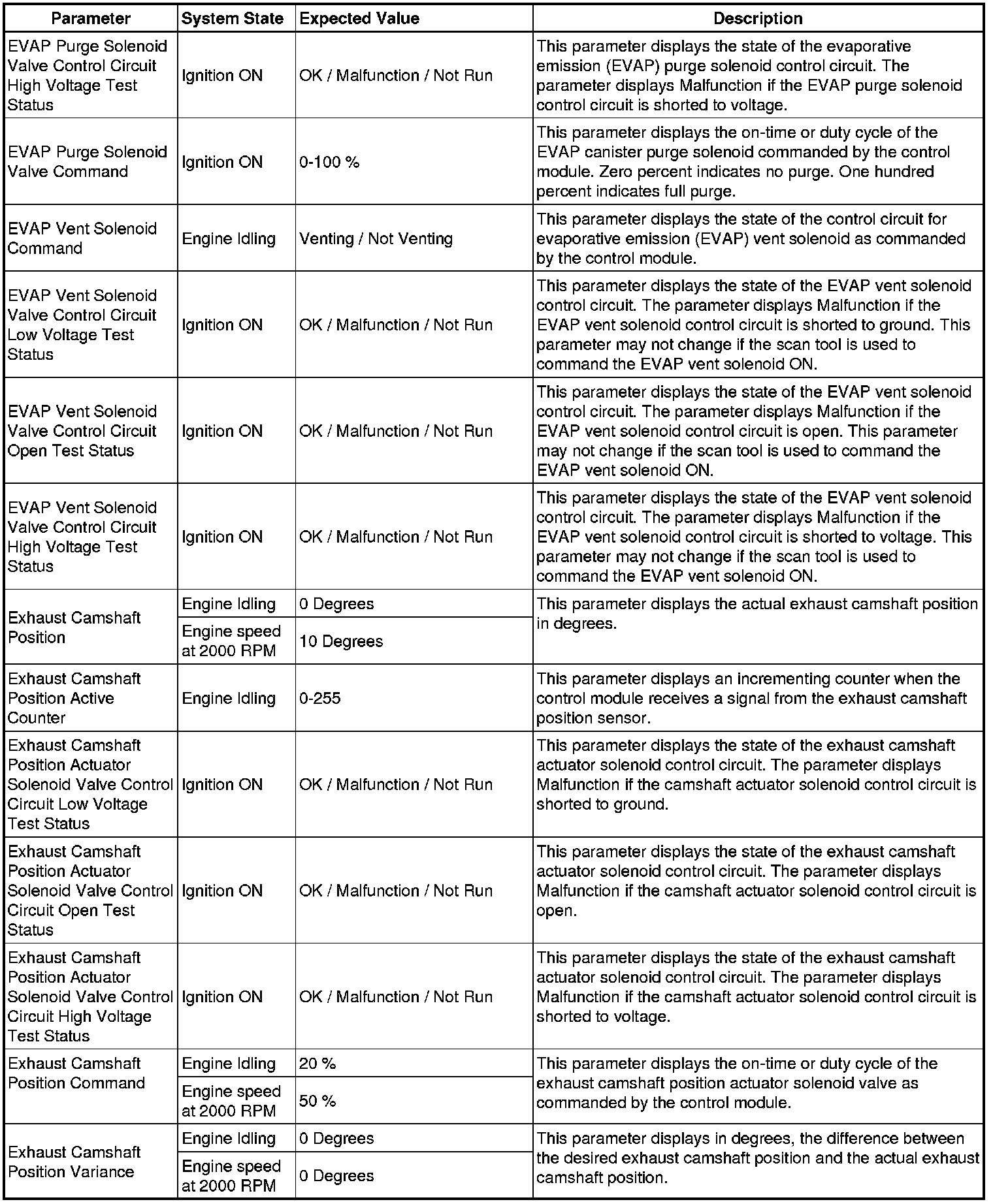 The Engine Control Module Scan Tool Data List contains all engine-related parameters that are available on the scan tool. The list is arranged in alphabetical order. A given parameter may appear in any one of the data lists, and in some cases may appear more than once, or in more than one data list in order to group certain related parameters together.