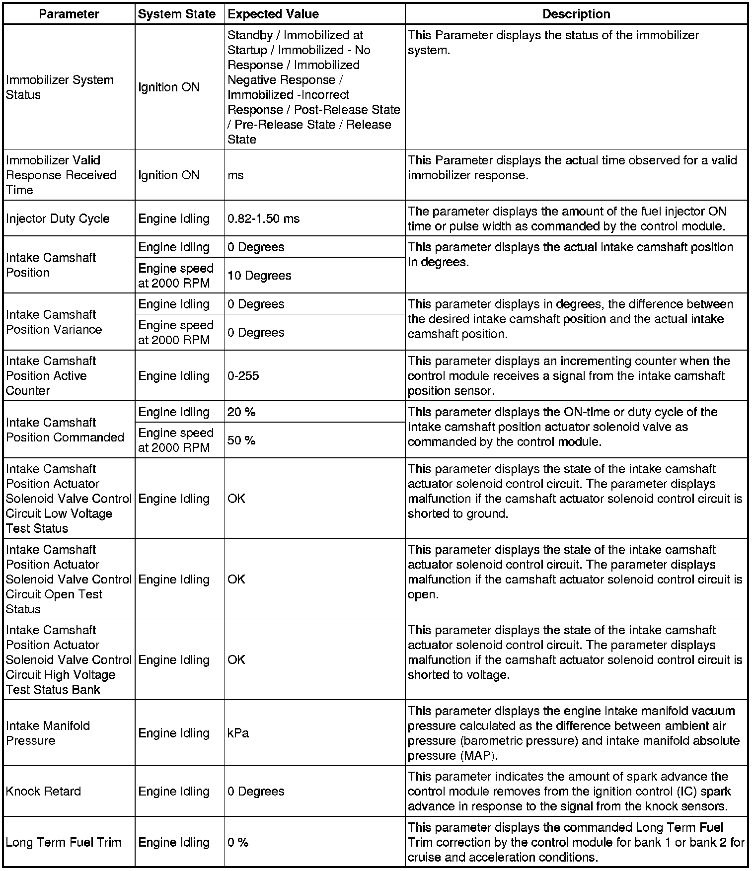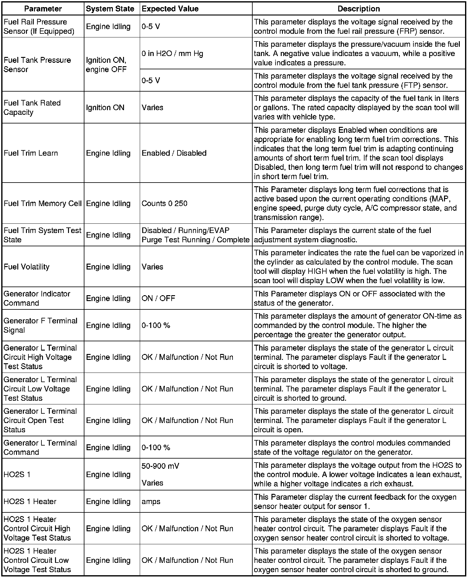The scan tool values from a properly running engine may be used for comparison with the engine you are diagnosing. The Engine Scan Tool Data List represents values that would be seen on a normally running engine.