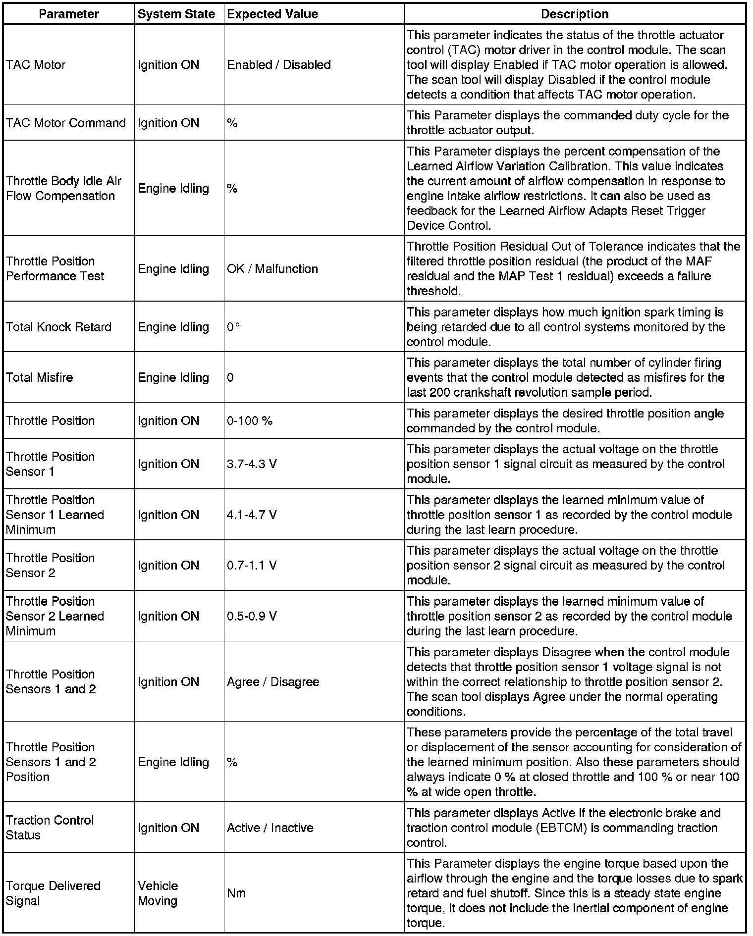 Only the parameters listed below are referenced in this service manual for use in diagnosis.