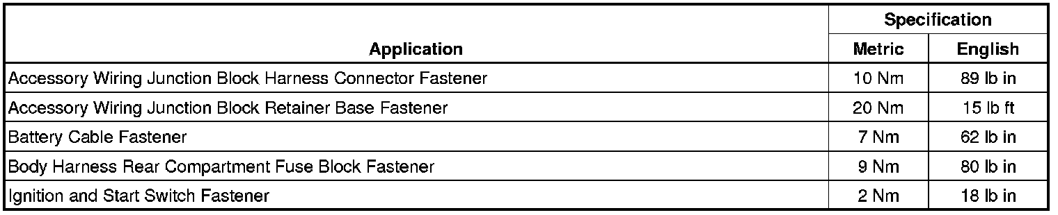 Fastener Tightening Specifications