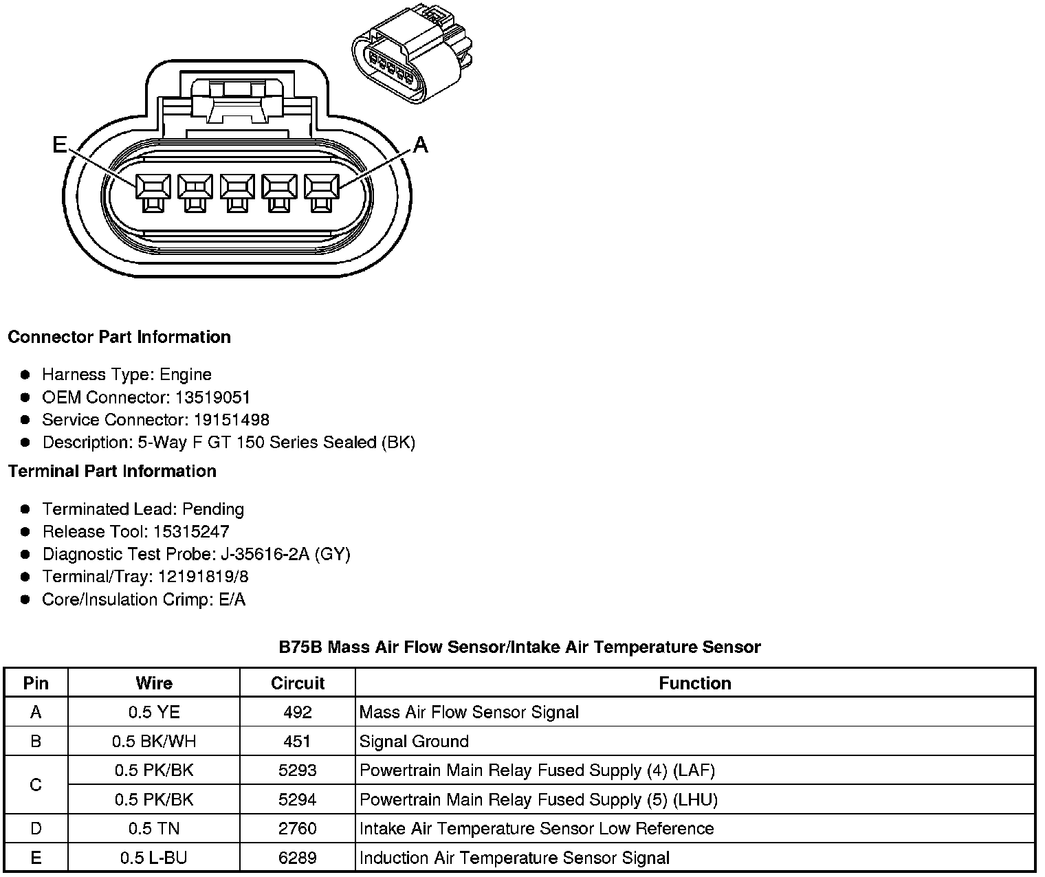 B75B Mass Air Flow Sensor/Intake Air Temperature Sensor