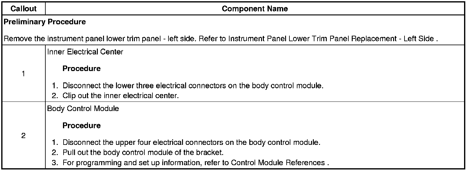 Body Control Module Replacement (Left Hand Drive)