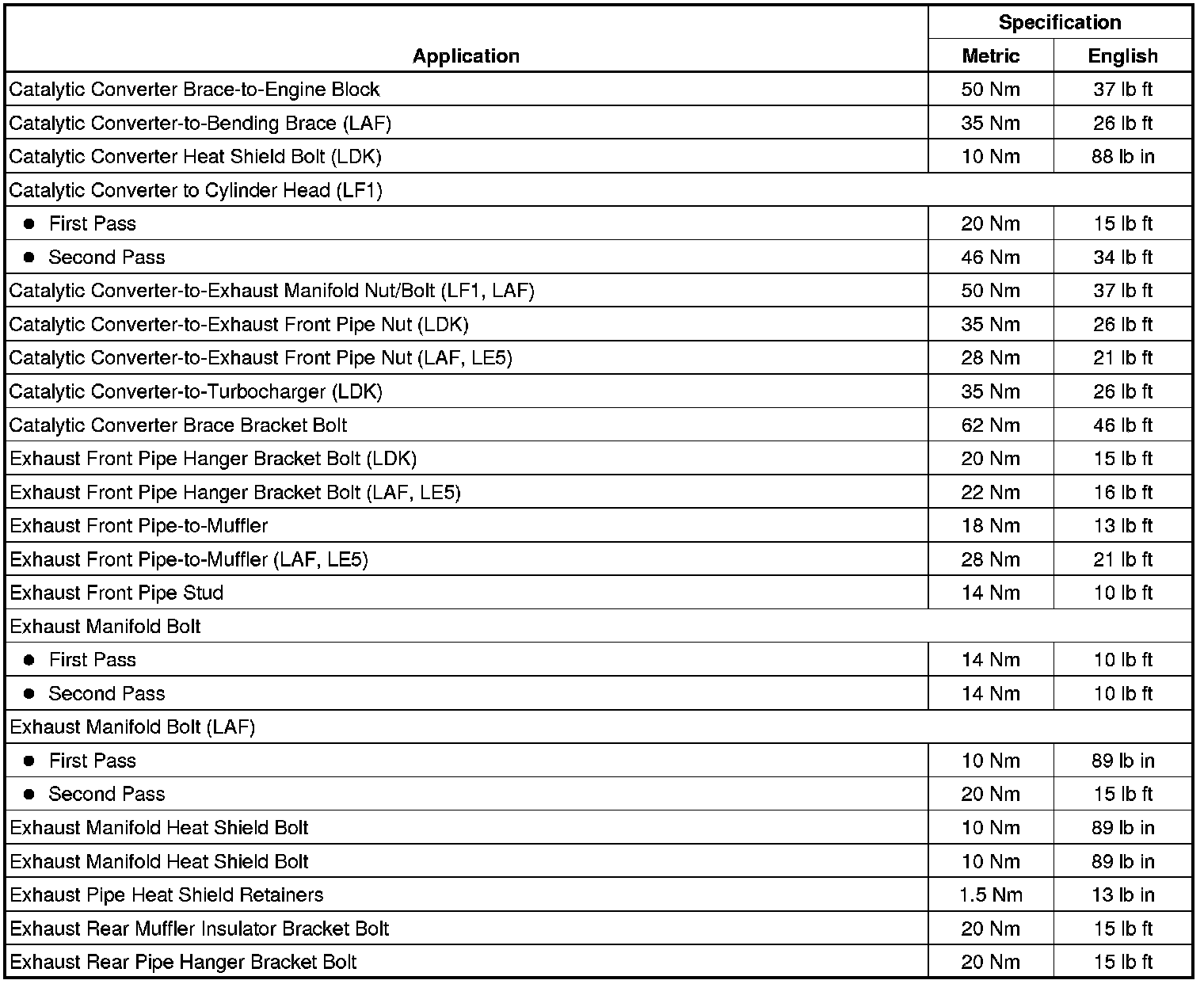 Fastener Tightening Specifications