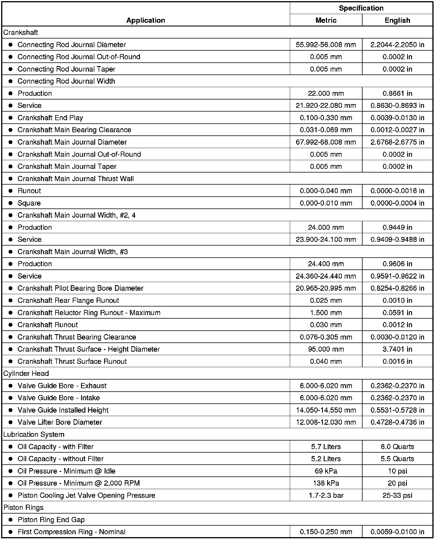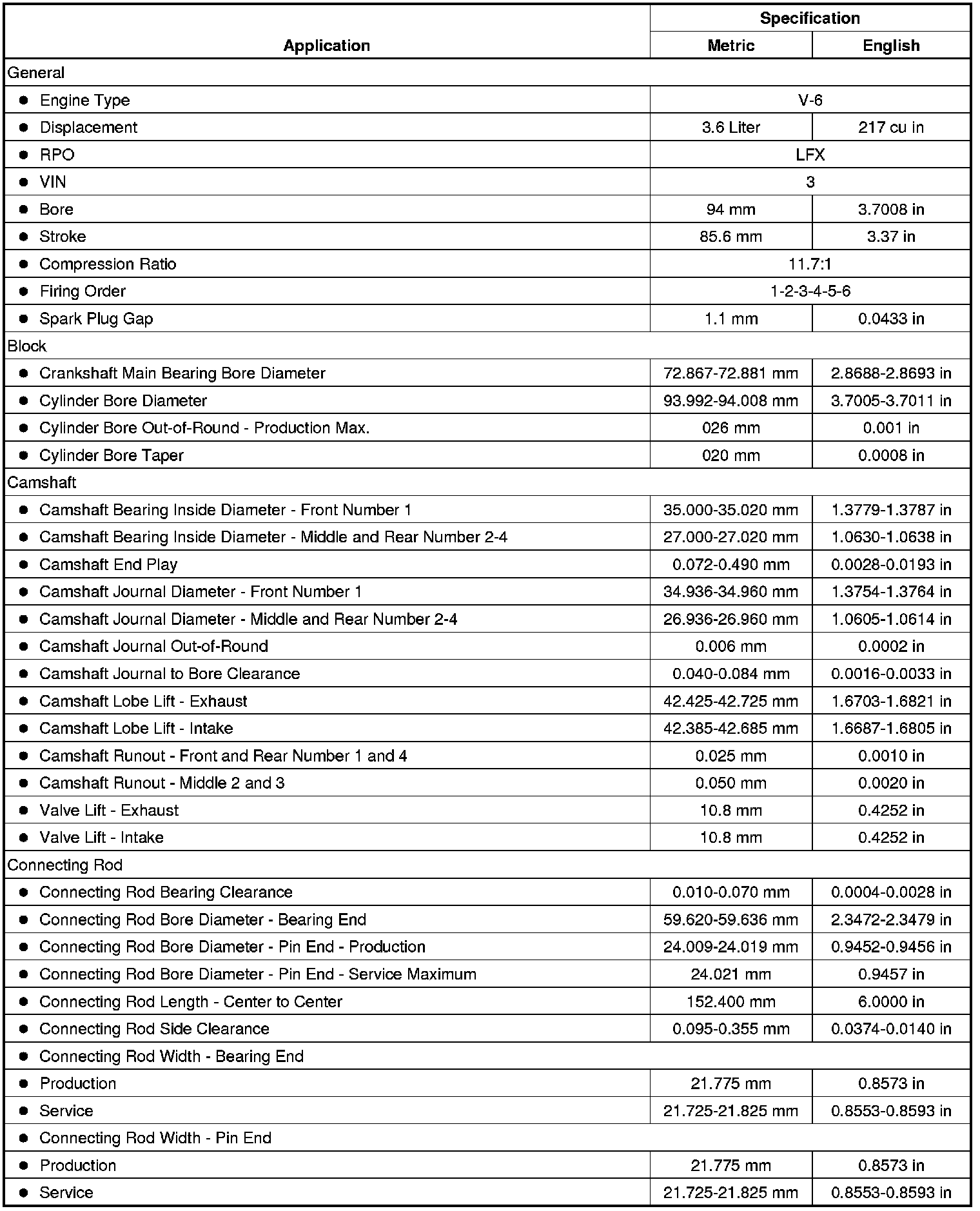 Engine Mechanical Specifications (LFX)