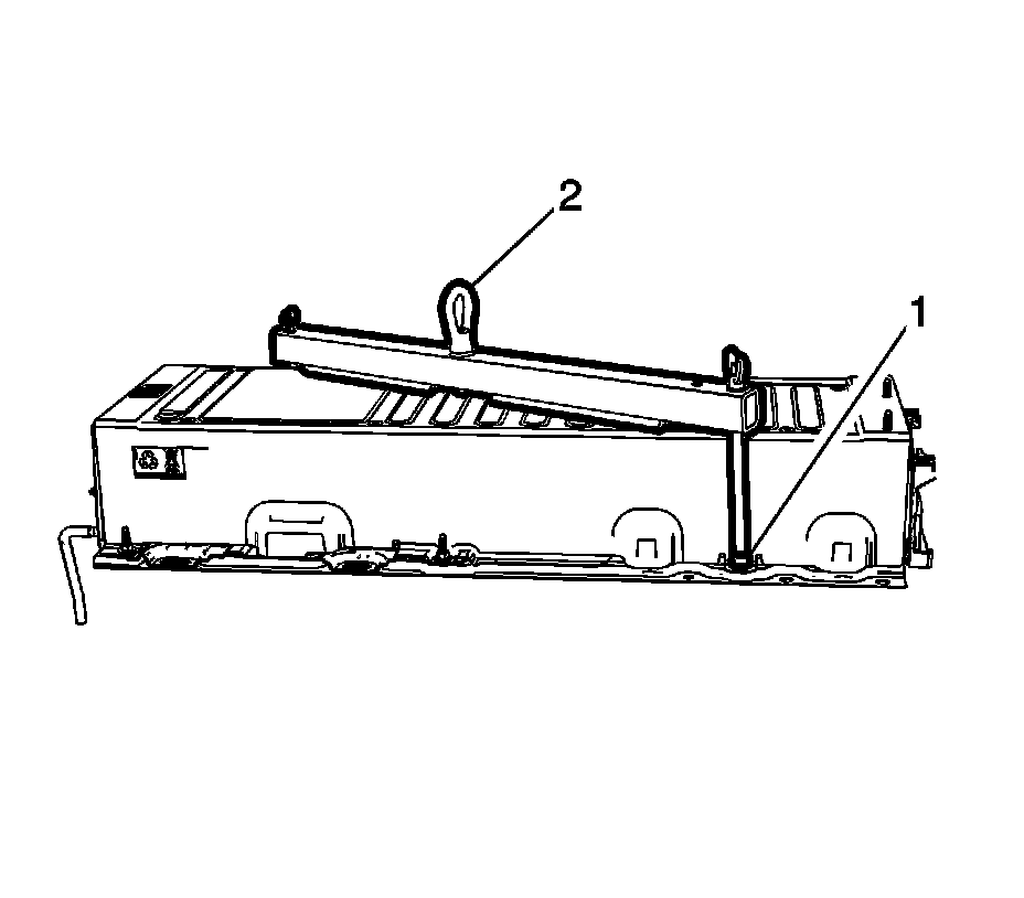 14. Attach a portable lift to the center eye bolt (2) of the battery pack lifting adapter.