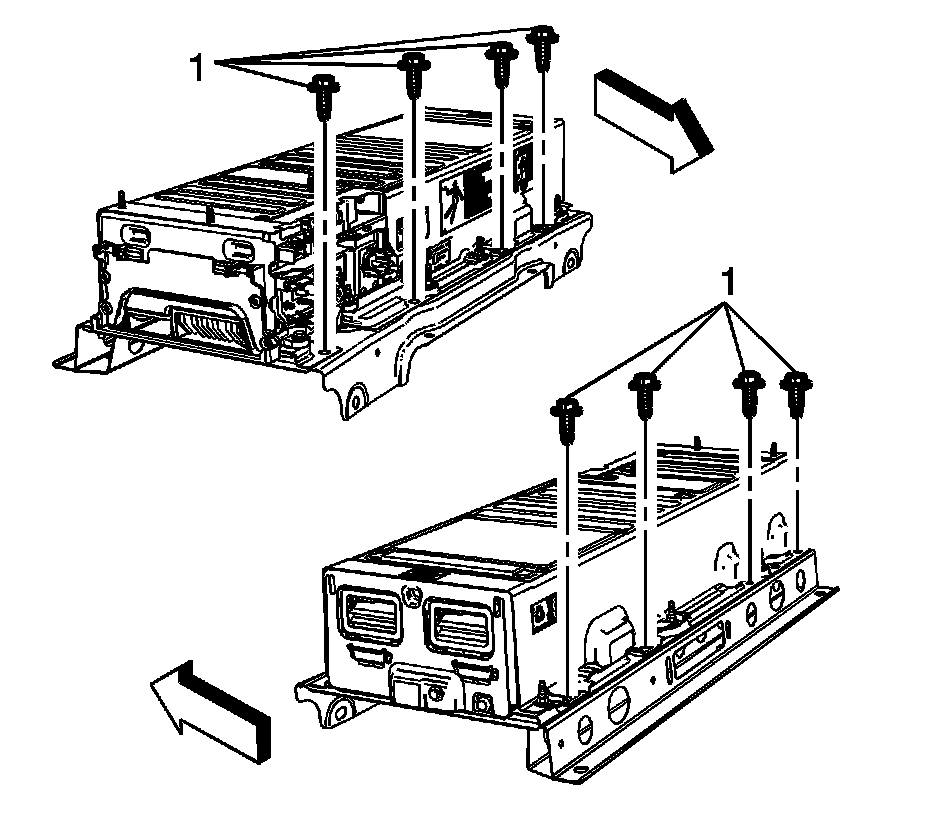 4. Install the generator control and battery module into position and tighten the mounting bolts (1) to 22 Nm (18 lb ft).