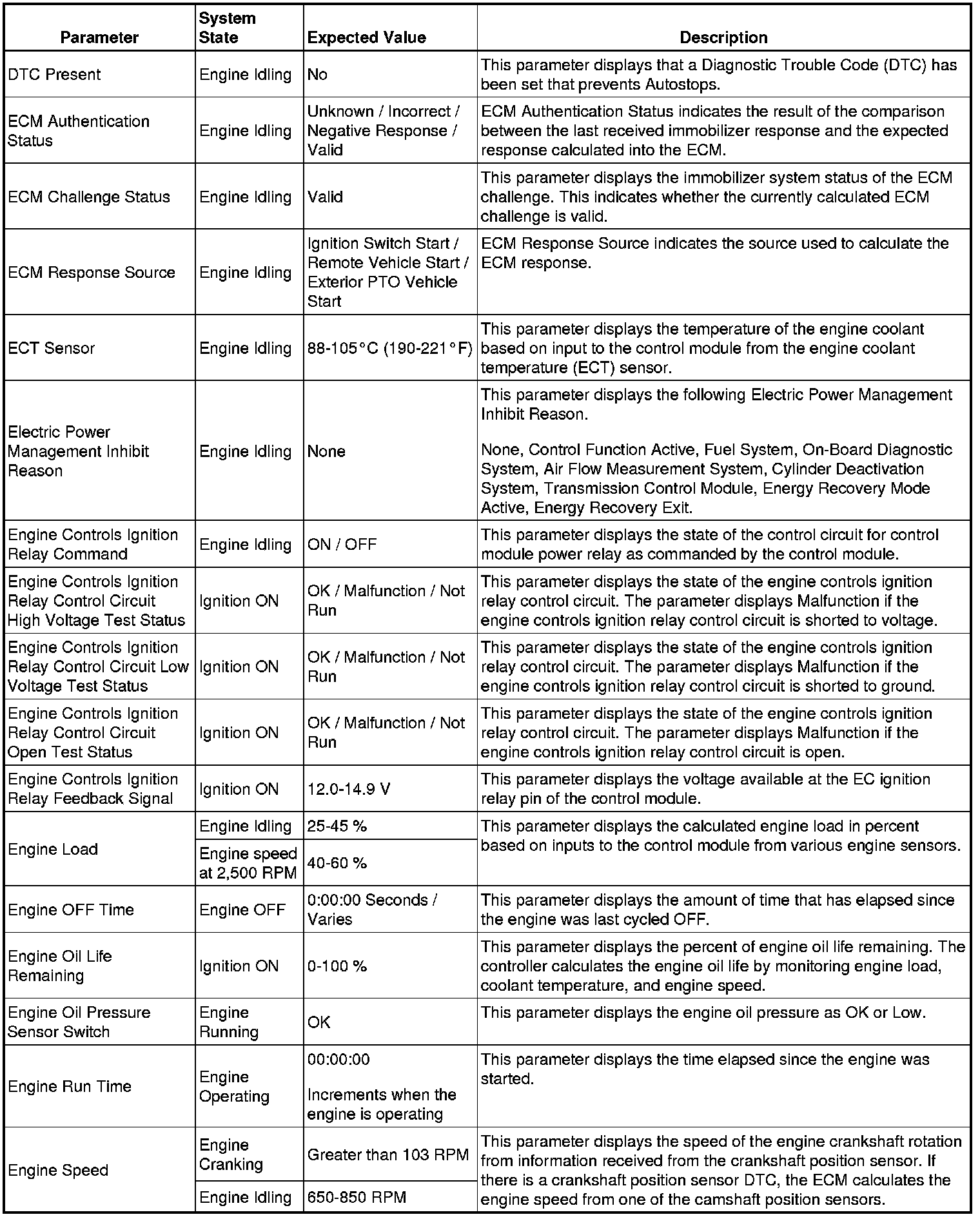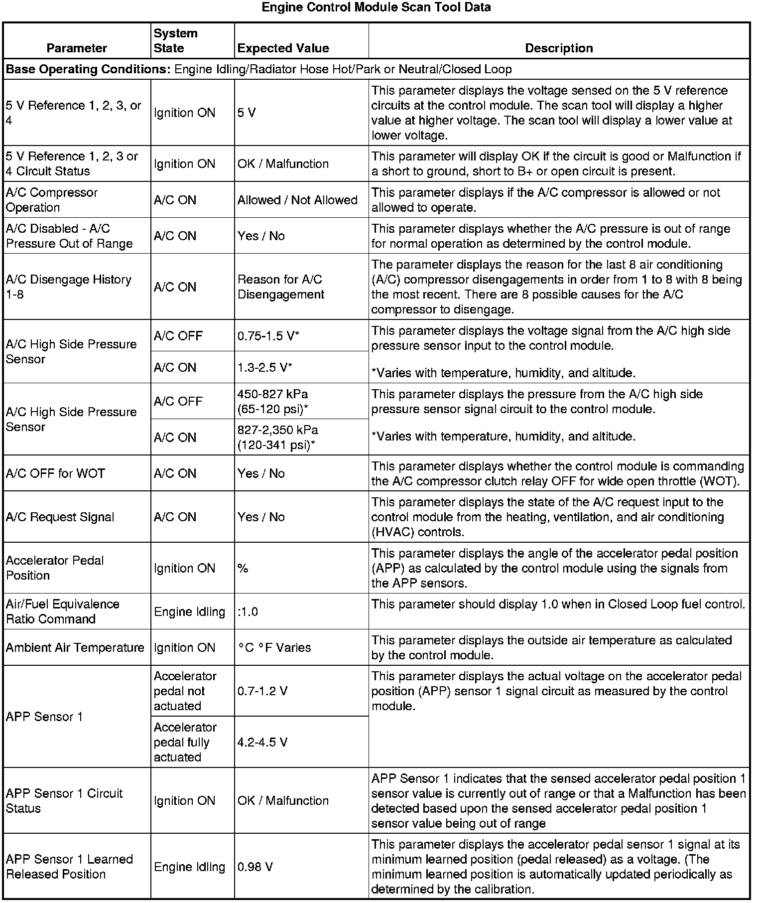 The Engine Control Module Scan Tool Data List contains all engine-related parameters that are available on the scan tool. The list is arranged in alphabetical order. A given parameter may appear in any one of the data lists, and in some cases may appear more than once, or in more than one data list in order to group certain related parameters together.