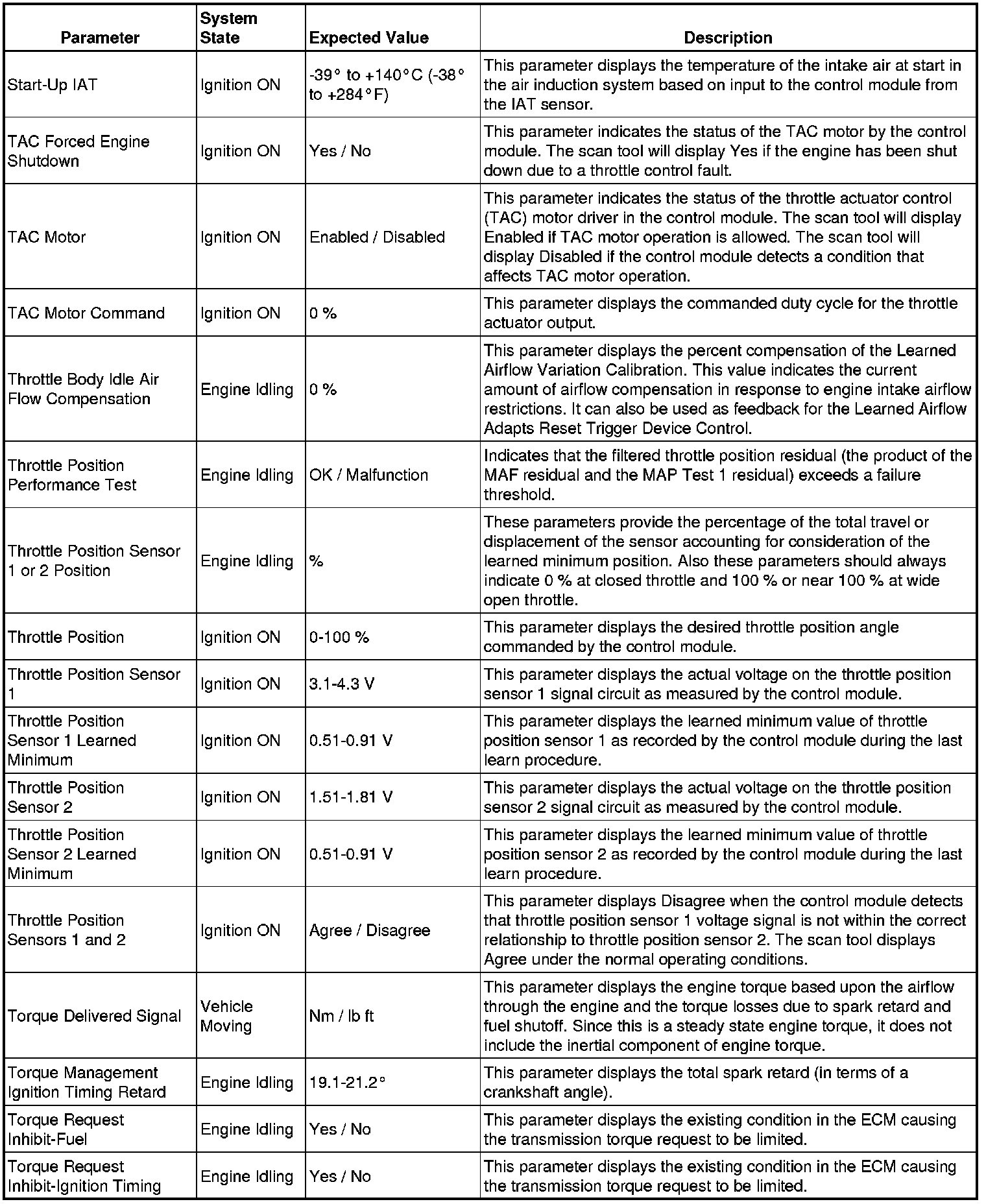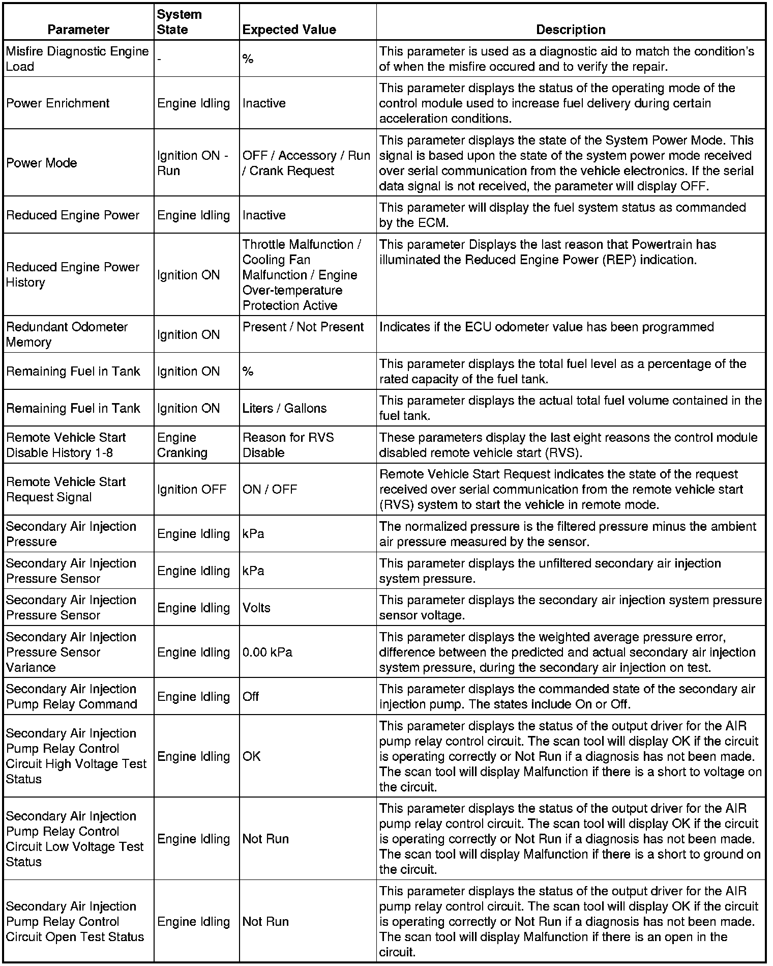 Only the parameters listed below are referenced in this service manual for use in diagnosis.