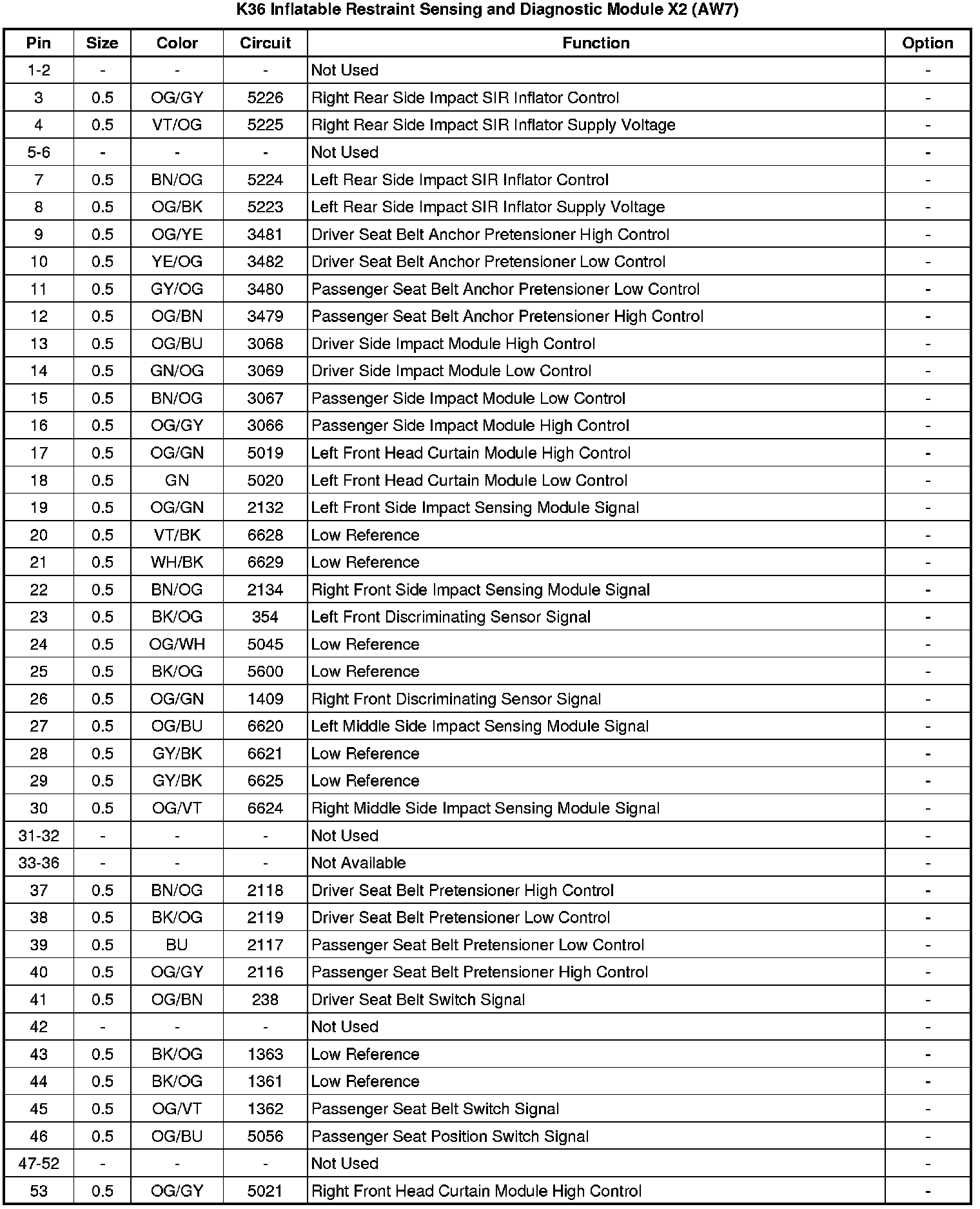 K36 Inflatable Restraint Sensing and Diagnostic Module X2 (AW7)