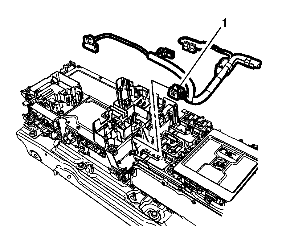 6. Lift the drive motor battery wire junction block relay (1) and the battery energy control module wiring junction block with the harness attached, and place on top of the battery energy control module (3).