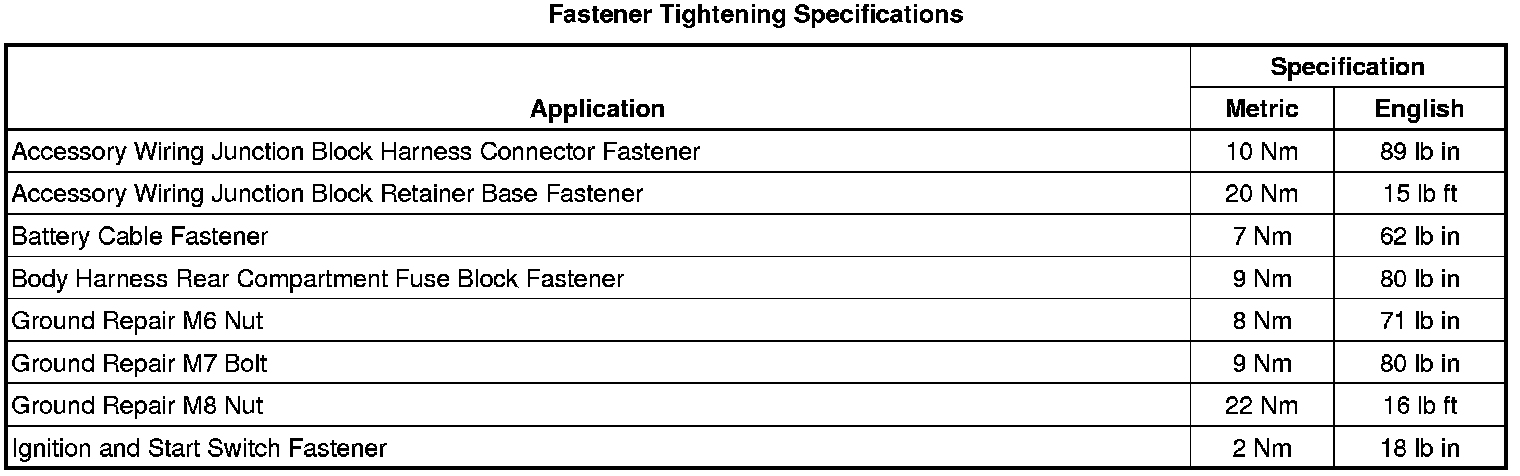Fastener Tightening Specifications