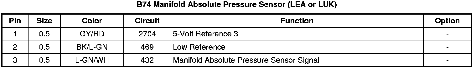 B74 Manifold Absolute Pressure Sensor (LEA or LUK)
