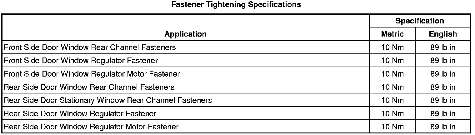 Fastener Tightening Specifications