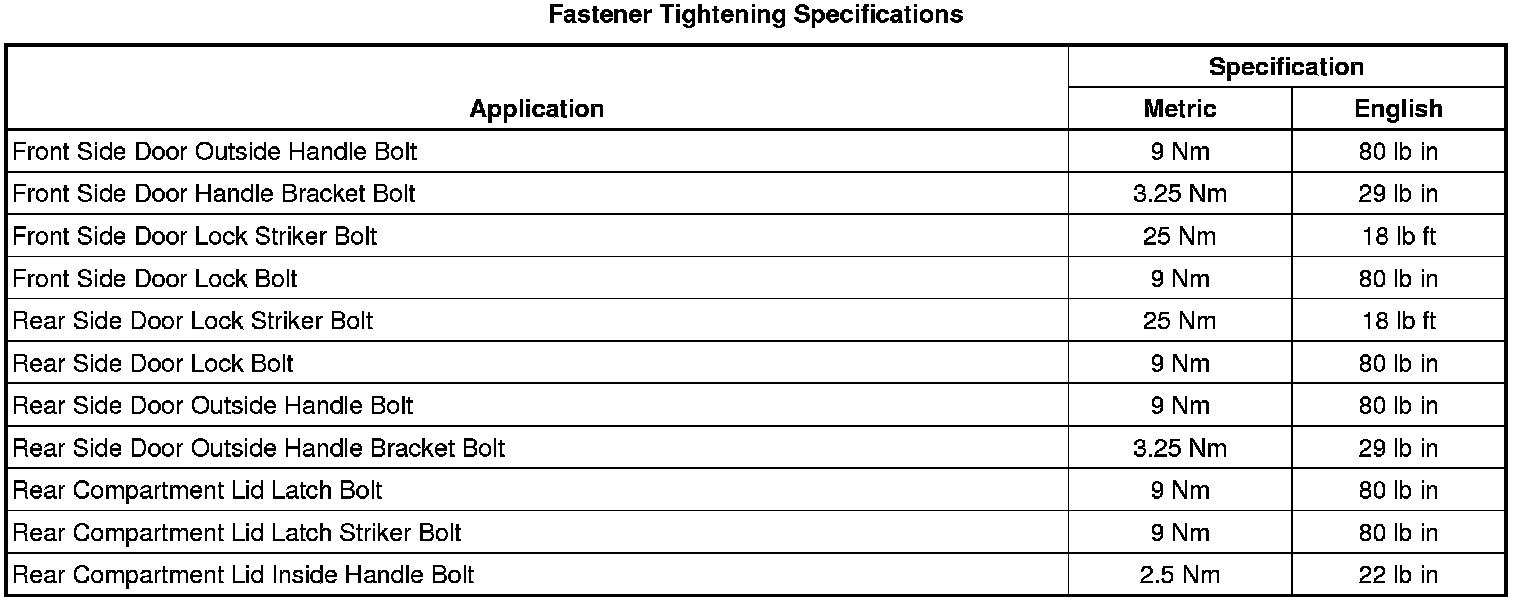 Fastener Tightening Specifications