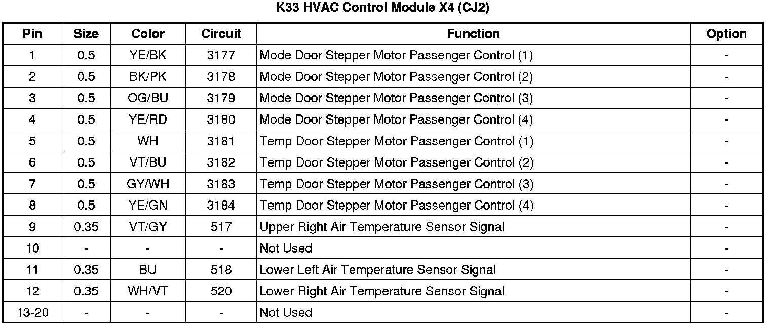 K33 HVAC Control Module X4 (CJ2)
