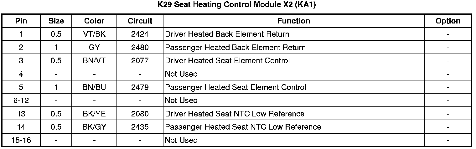 Seat Heating Control Module X2 (KA1)