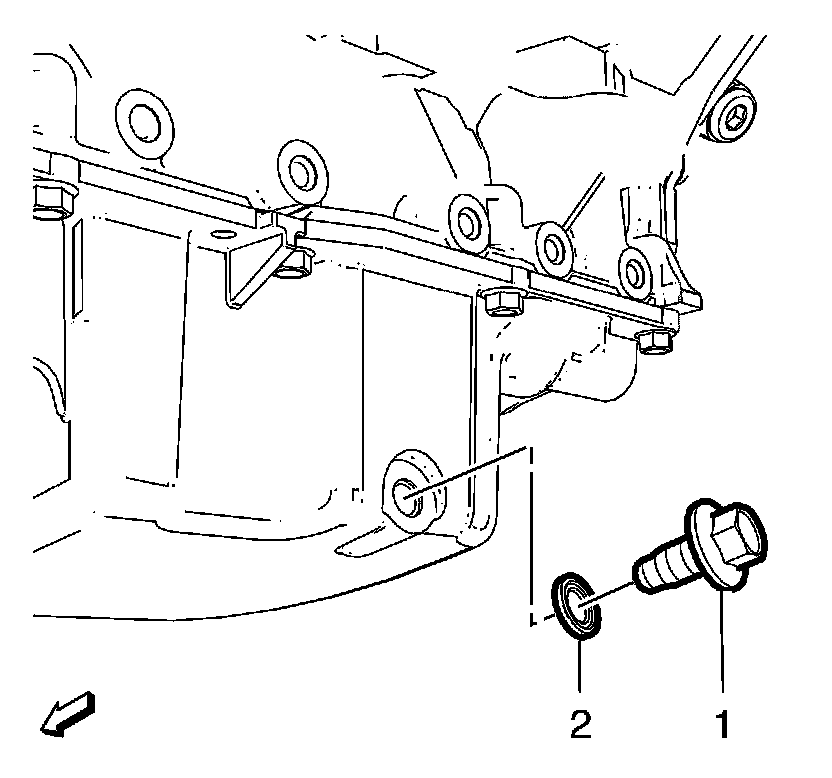 4. Remove the oil drain plug (1) and the oil drain plug seal ring (2).