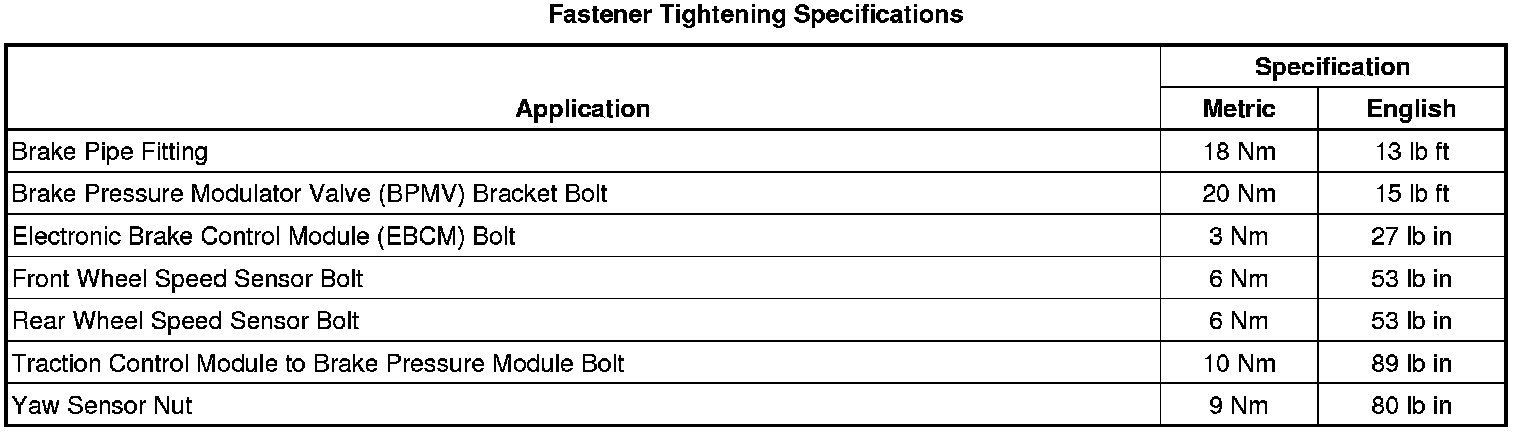 Fastener Tightening Specifications