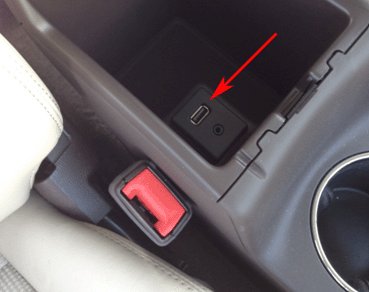 5. Insert the Jump Drive into the vehicle USB port (located inside the front floor console storage area). The radio will return a "No Files Found" message. Press OK.