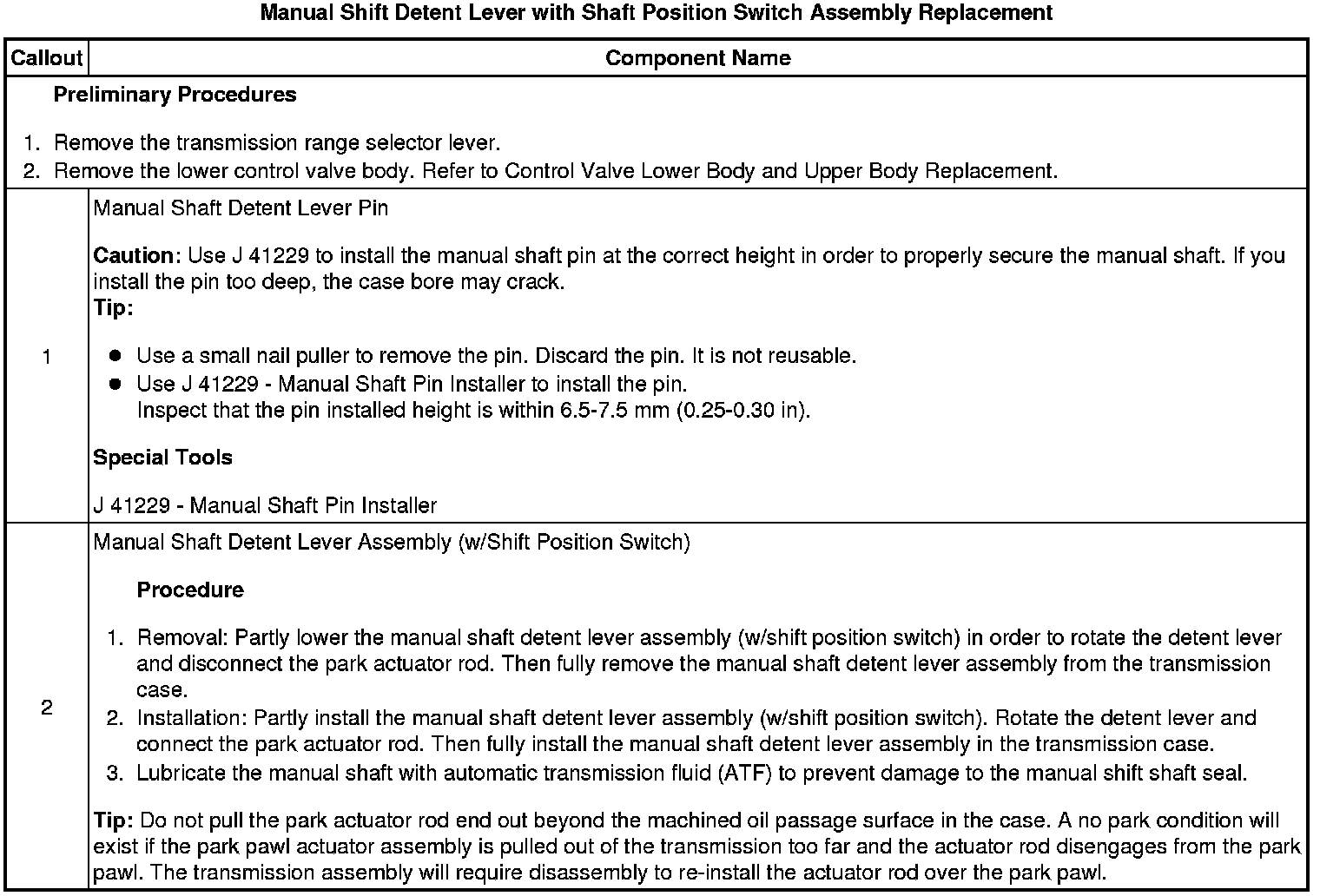 Manual Shift Detent Lever with Shaft Position Switch Assembly Replacement