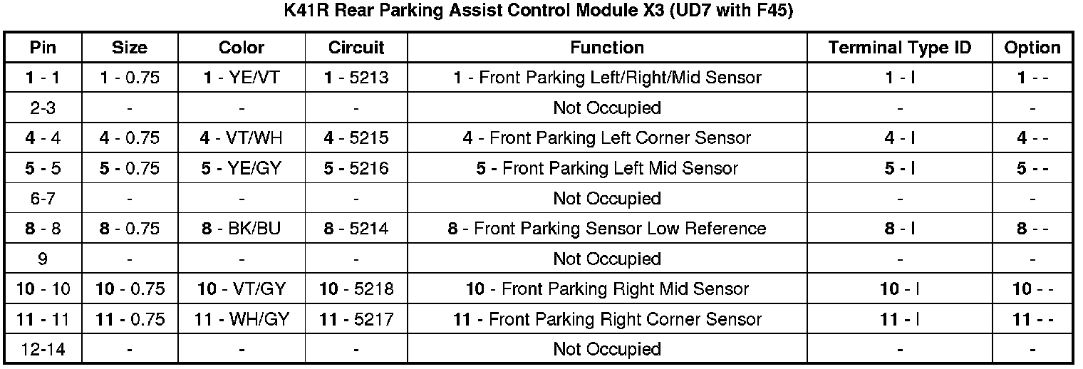 Rear Parking Assist Control Module X3 (UD7 with F45)