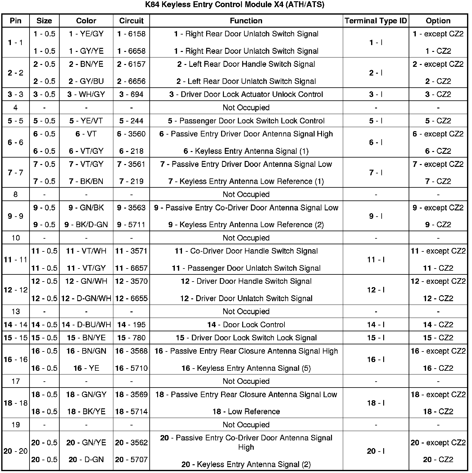 Keyless Entry Control Module X4 (ATH/ATS)