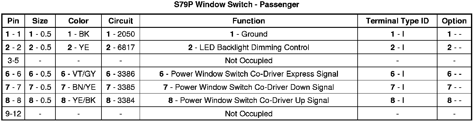 S79P Window Switch - Passenger