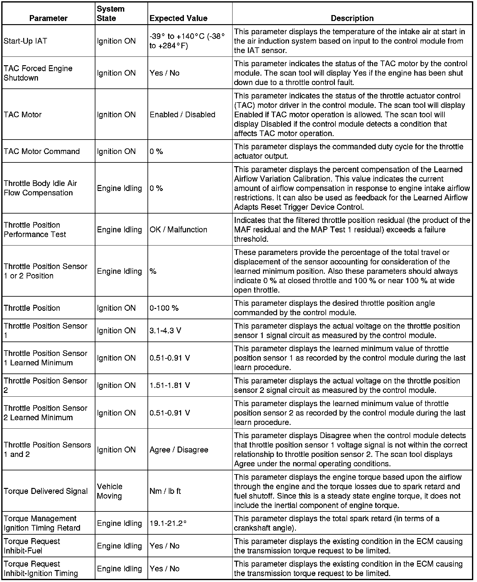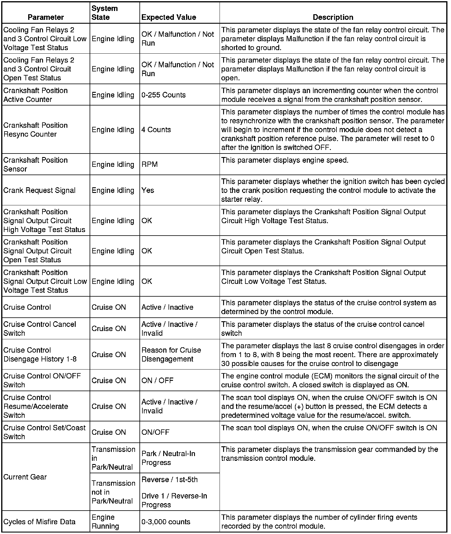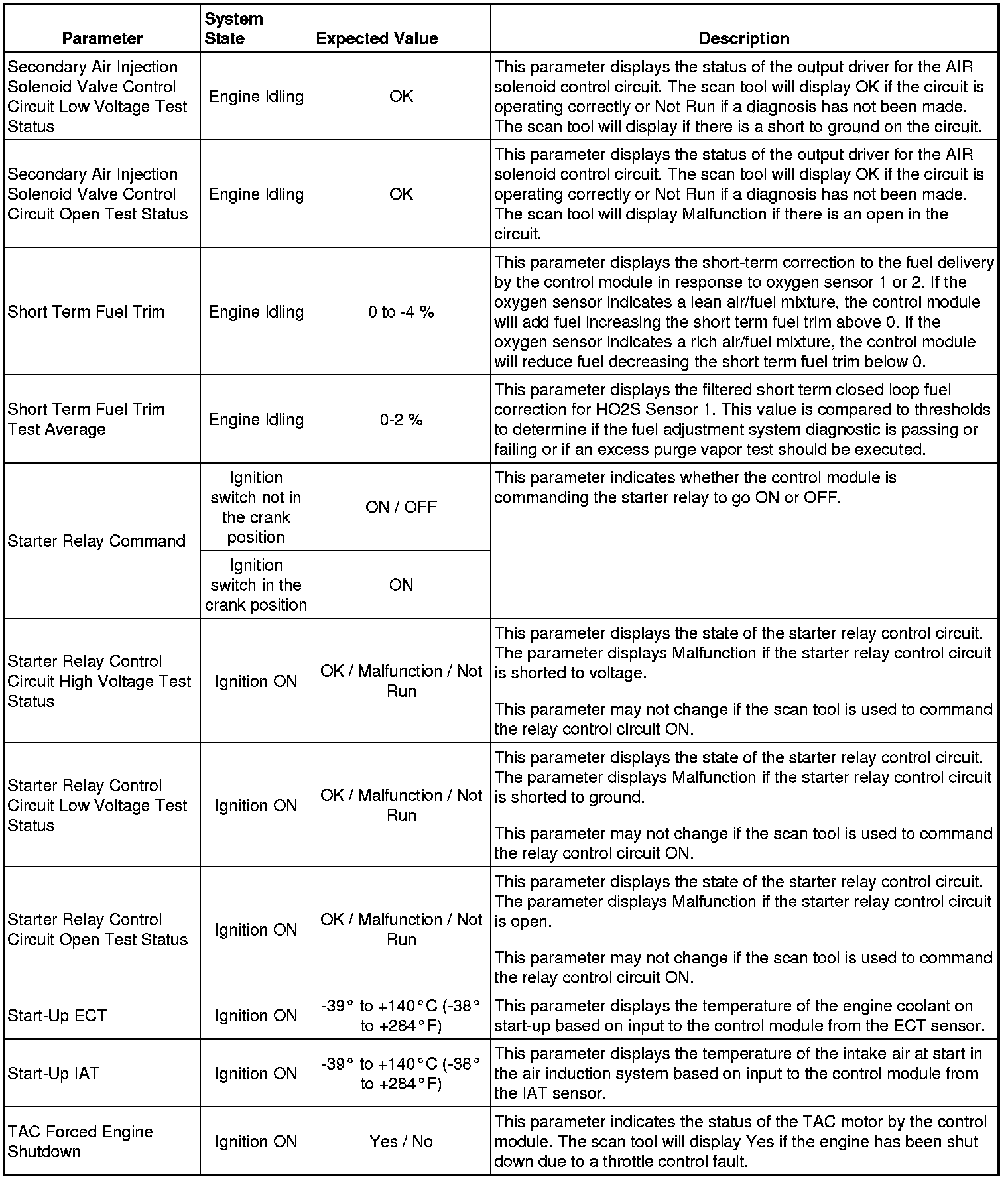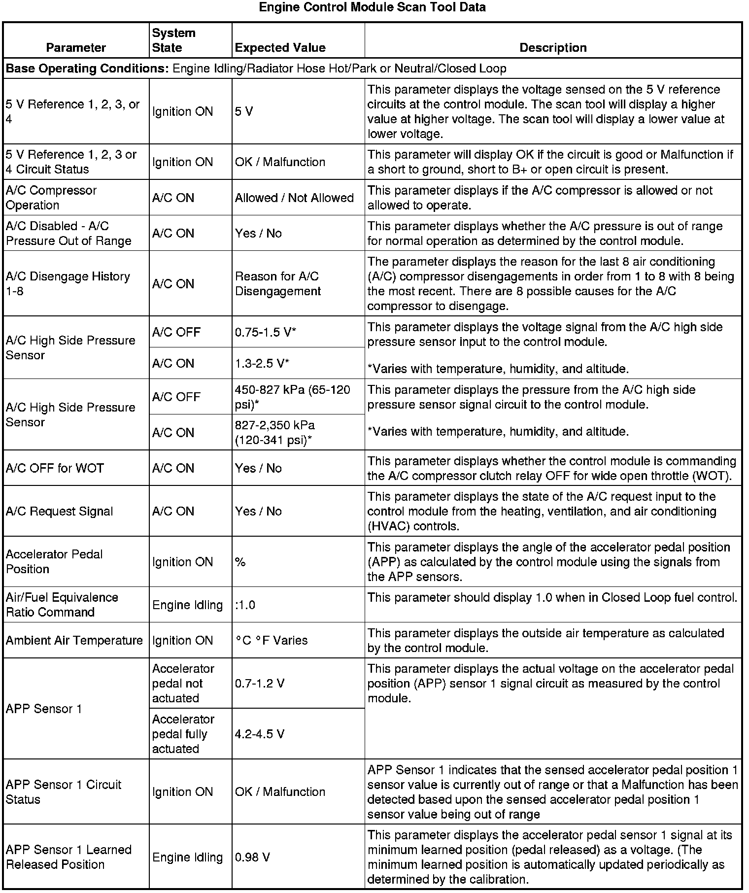 The Engine Control Module Scan Tool Data List contains all engine-related parameters that are available on the scan tool. The list is arranged in alphabetical order. A given parameter may appear in any one of the data lists, and in some cases may appear more than once, or in more than one data list in order to group certain related parameters together.