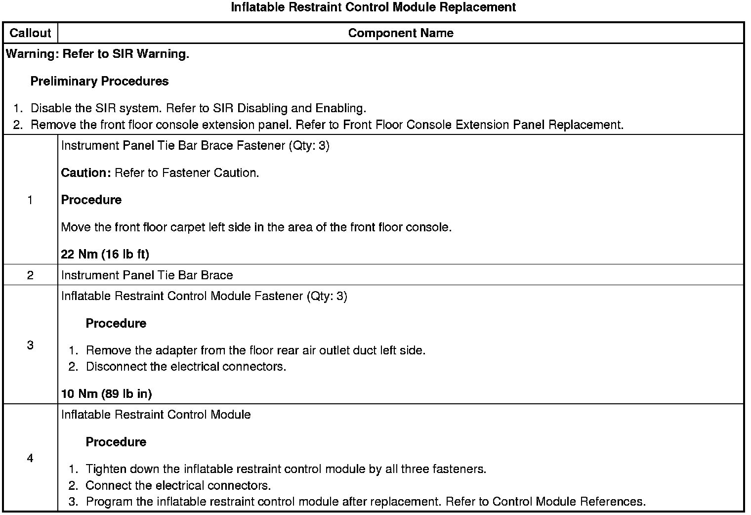 Inflatable Restraint Control Module Replacement
