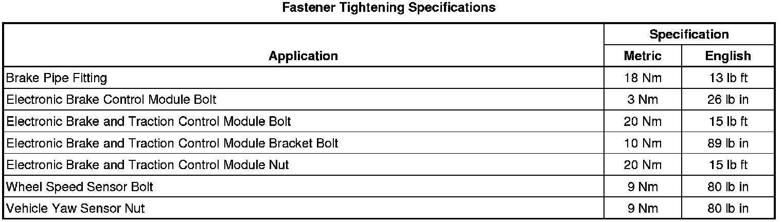 Fastener Tightening Specifications