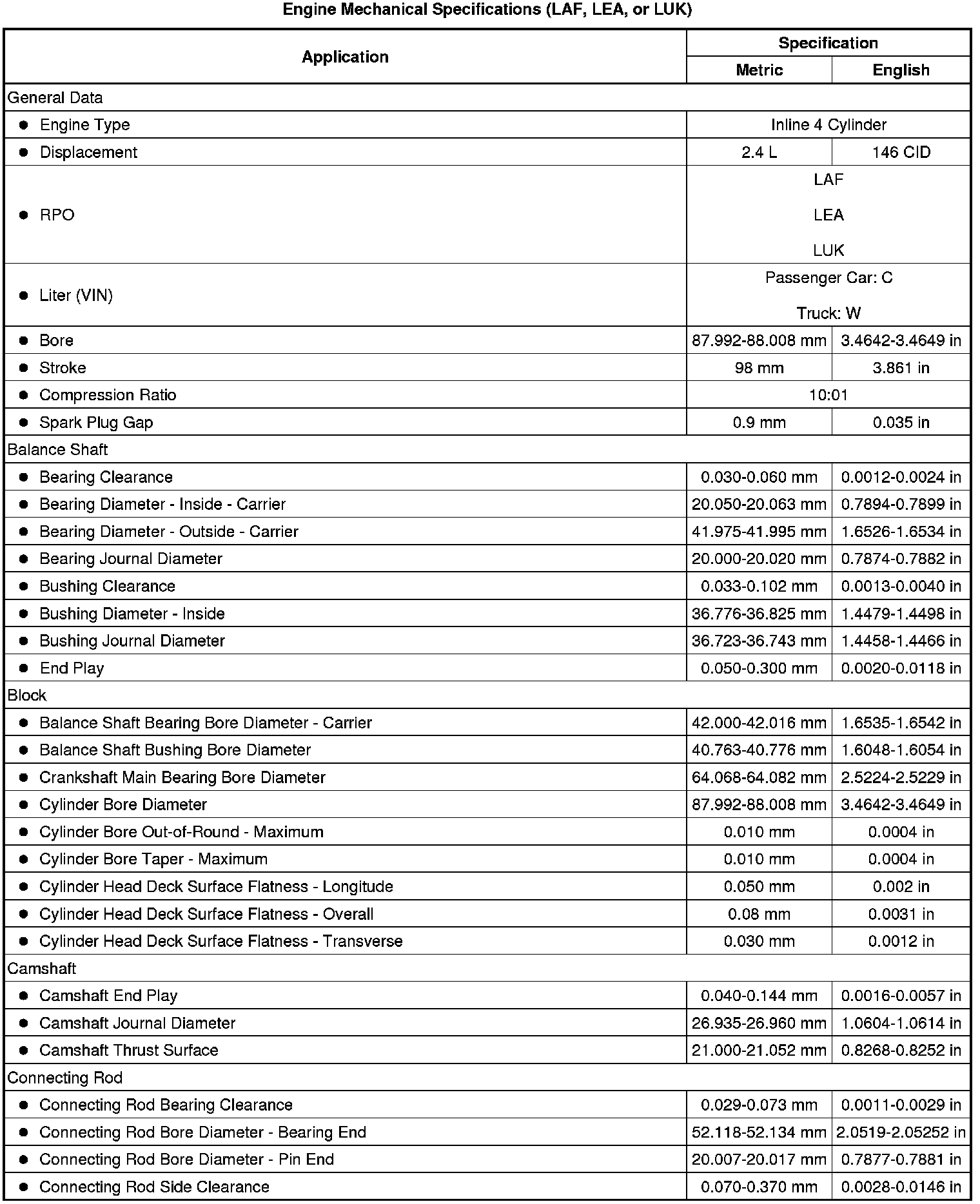 Engine Mechanical Specifications (LAF, LEA, or LUK)