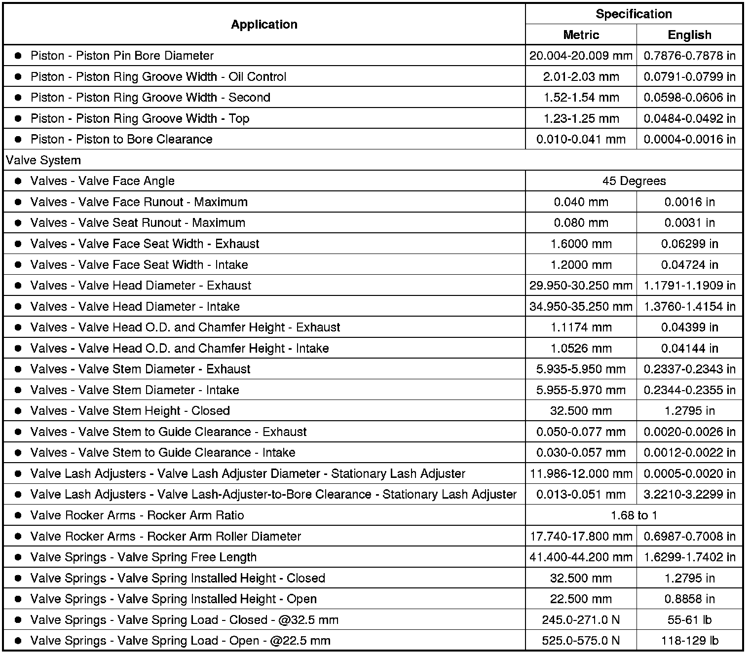 Engine Mechanical Specifications
