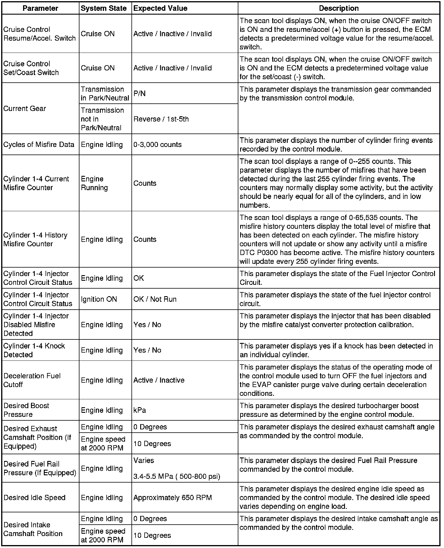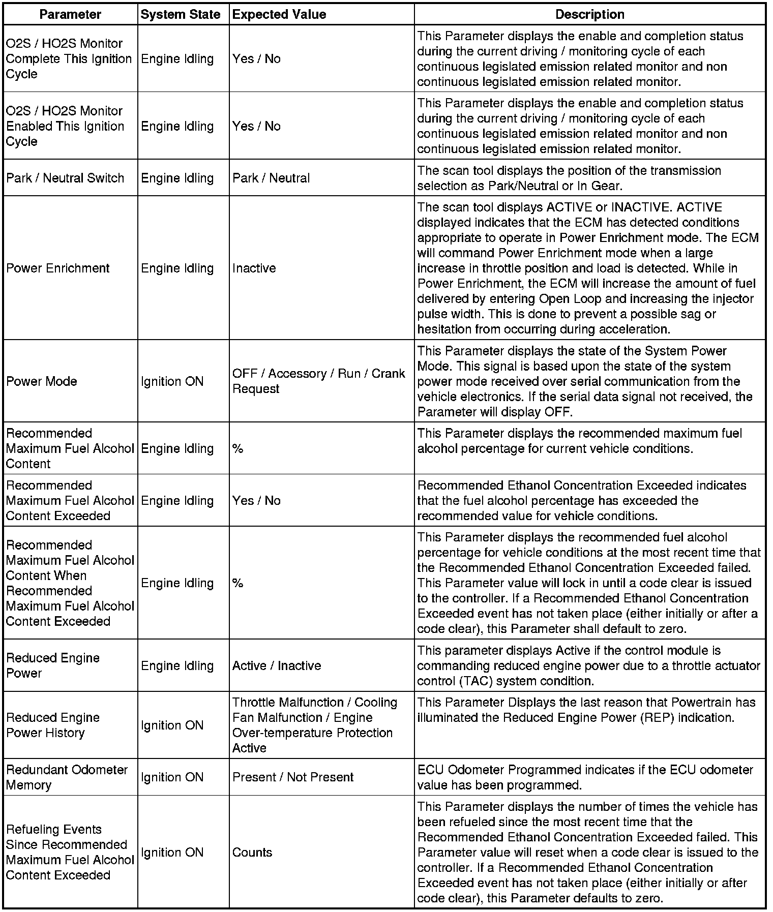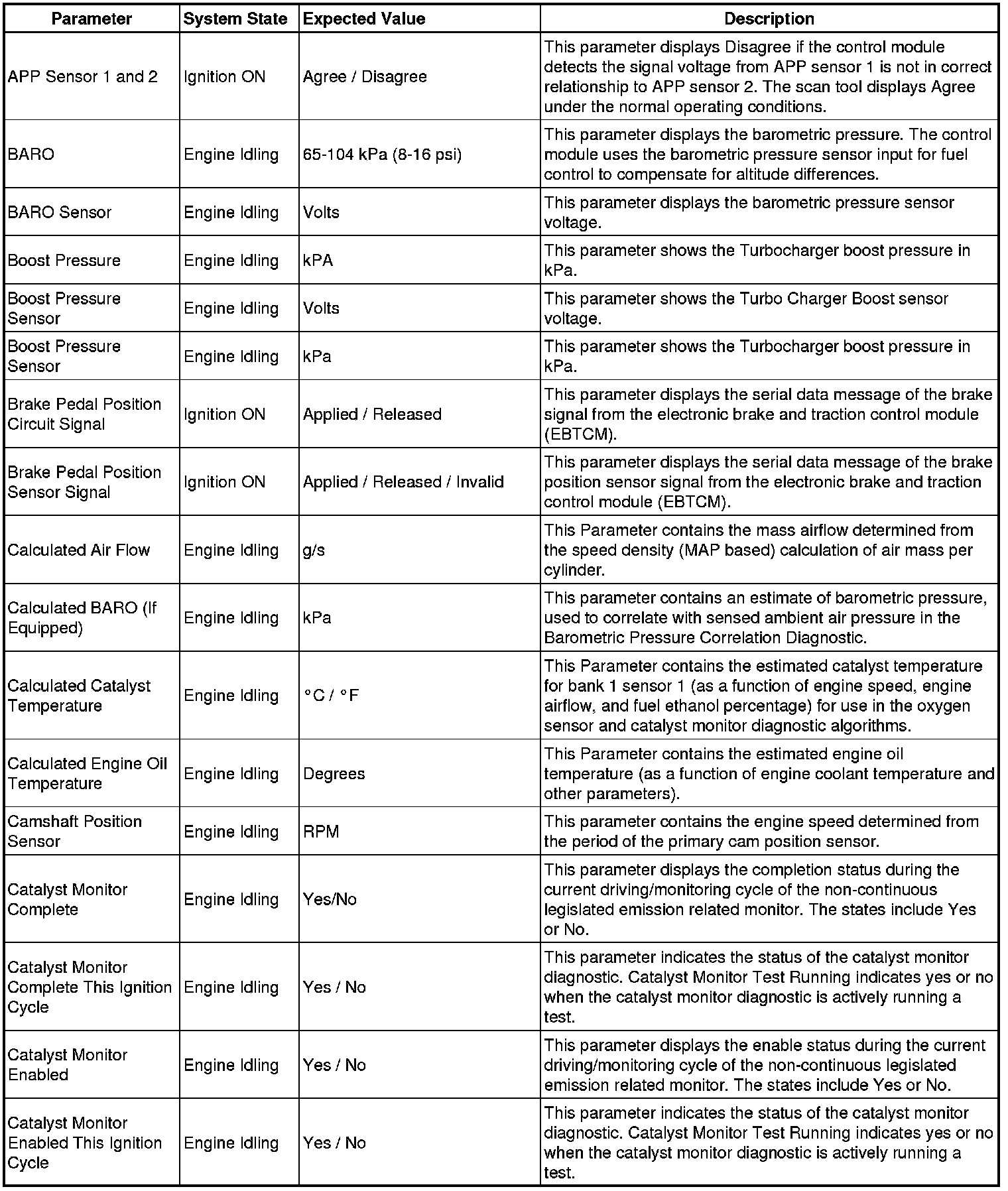 The Engine Control Module Scan Tool Data List contains all engine-related parameters that are available on the scan tool. The list is arranged in alphabetical order. A given parameter may appear in any one of the data lists, and in some cases may appear more than once, or in more than one data list in order to group certain related parameters together.