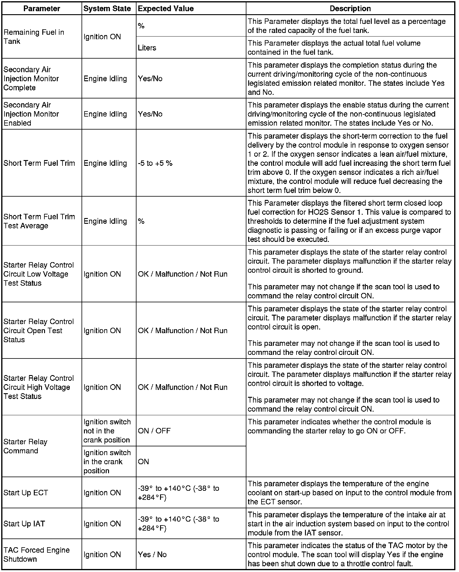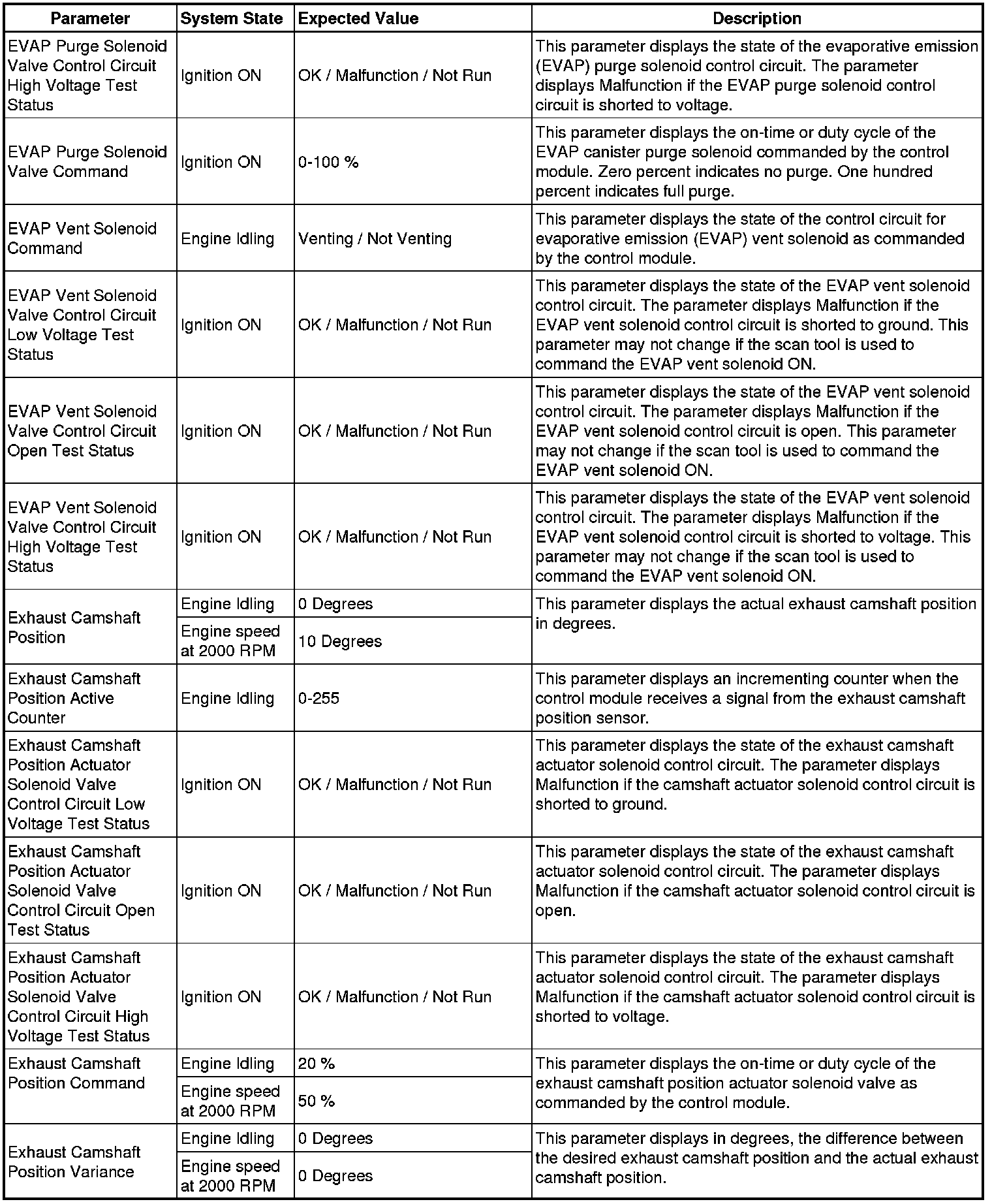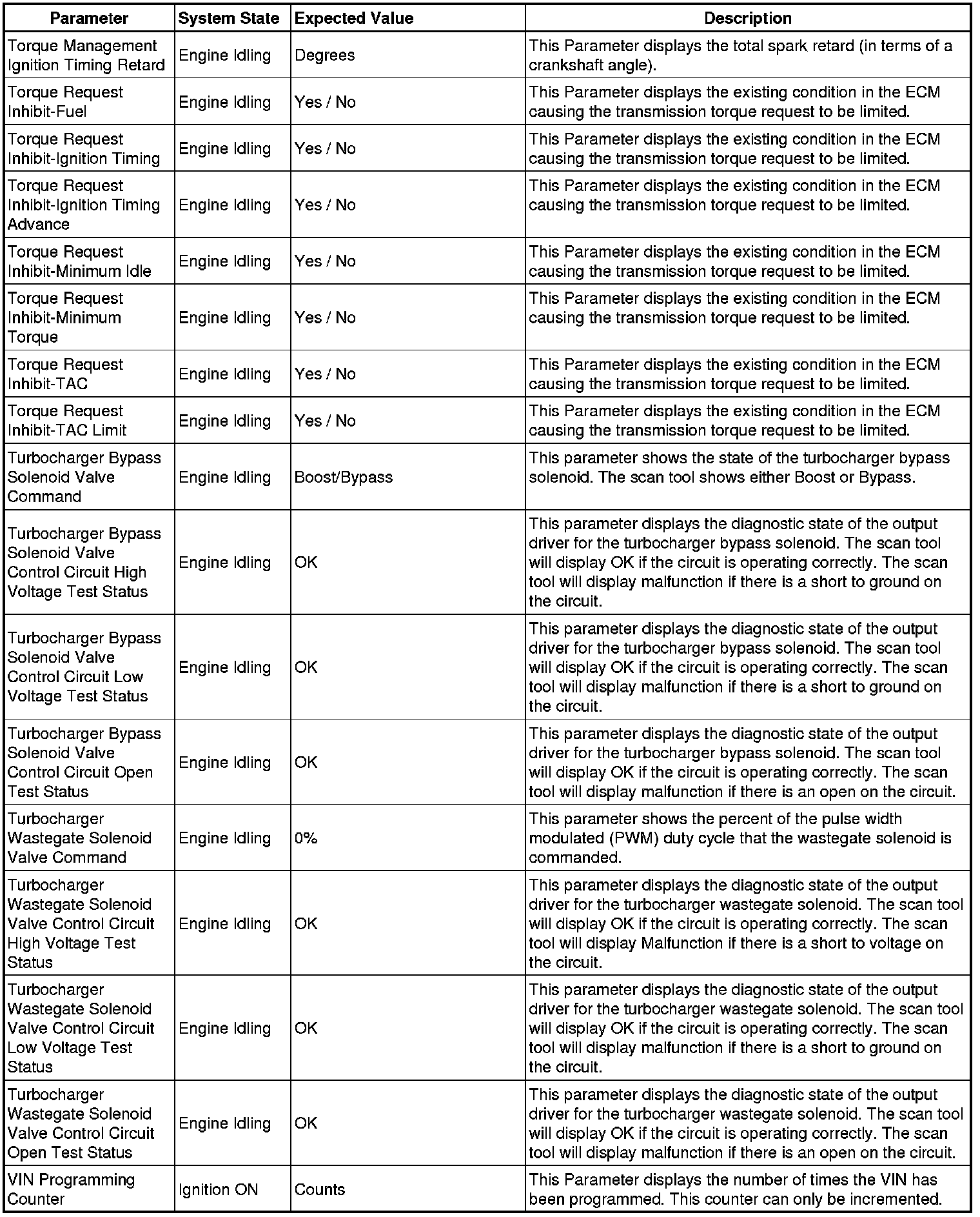 The Engine Control Module Scan Tool Data List contains all engine-related parameters that are available on the scan tool. The list is arranged in alphabetical order. A given parameter may appear in any one of the data lists, and in some cases may appear more than once, or in more than one data list in order to group certain related parameters together.