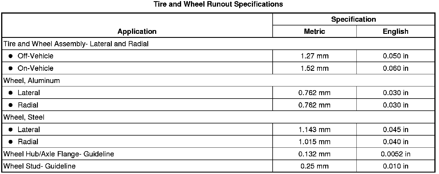 Tire and Wheel Runout Specifications