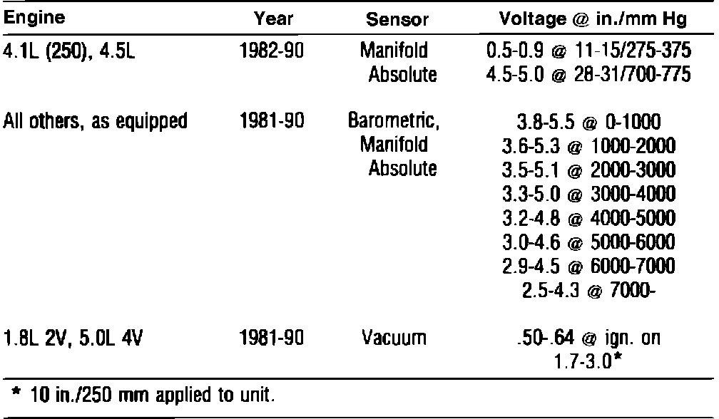 Home >> Cadillac >> 1982 >> Cimarron L4-112 1.8L >> Repair and Diagnosis >> Powertrain Management >> Computers and Control Systems >> Barometric Pressure Sensor >> Specifications