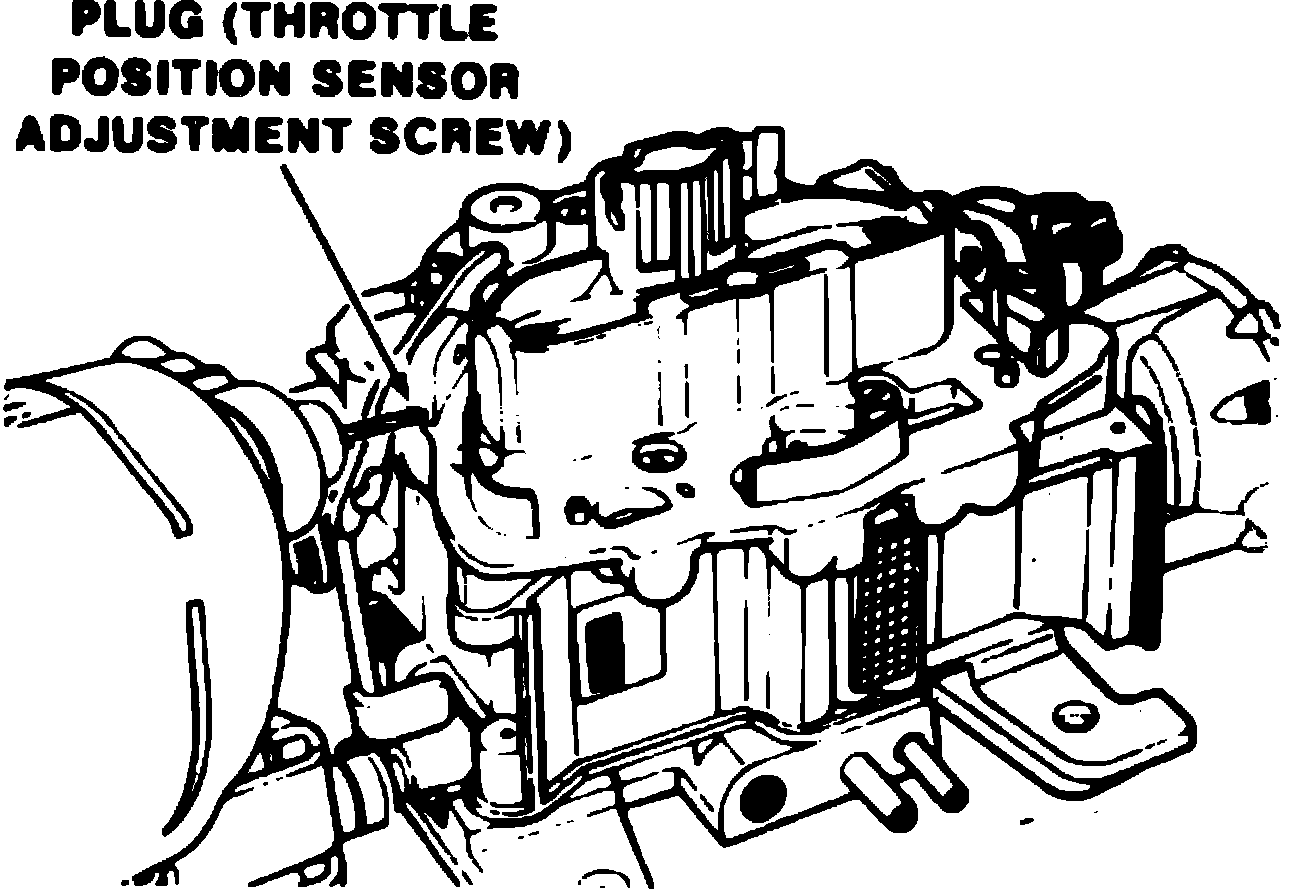 NOTE: Do not remove plug sealing TPS adjustment or adjust TPS unless carburetor is overhauled or "Computer Command Control (C3)" system diagnosis indicates a problem with the switch.