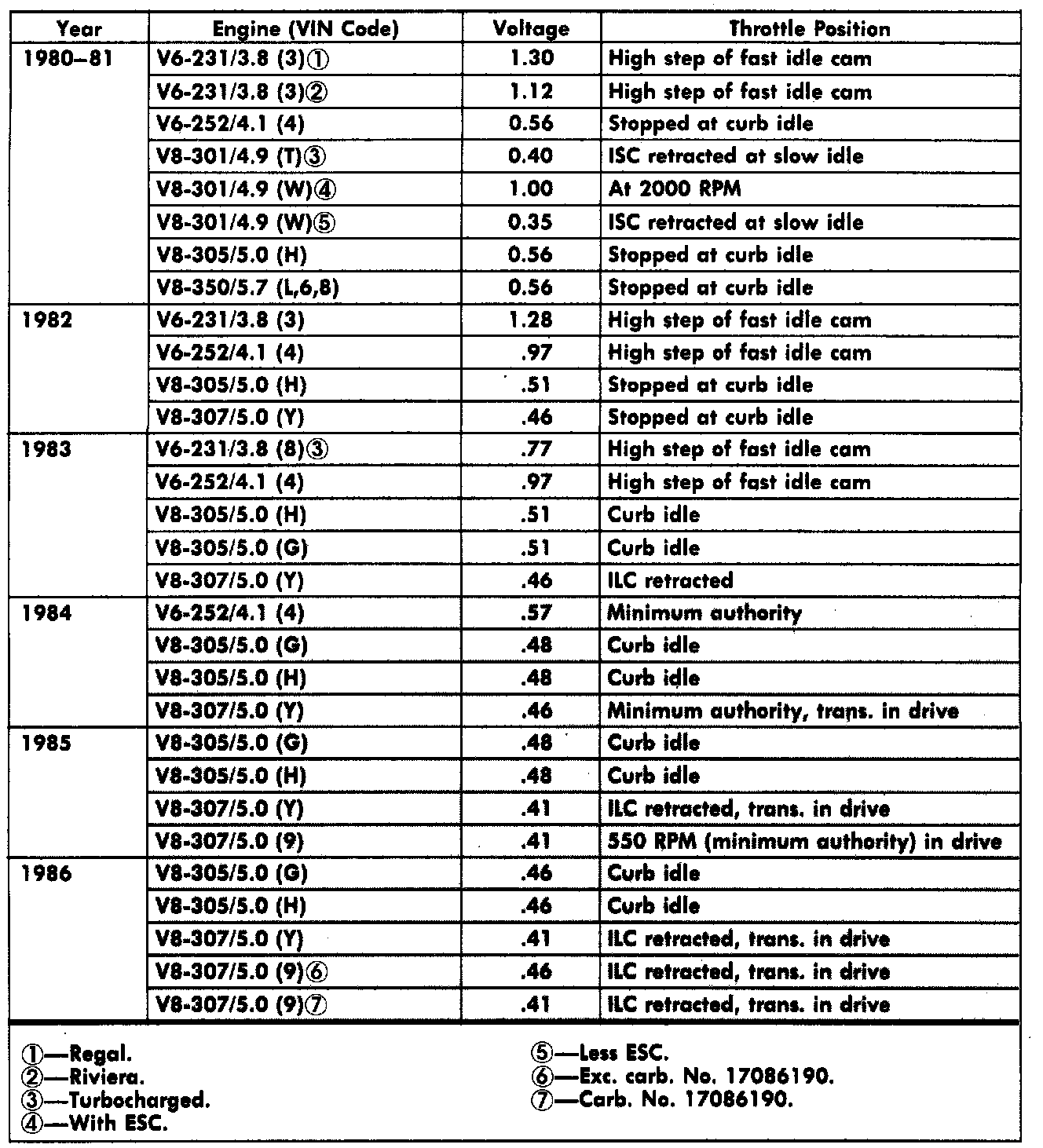 Fig. 27 Throttle Position Sensor (TPS) adjustment specifications.: