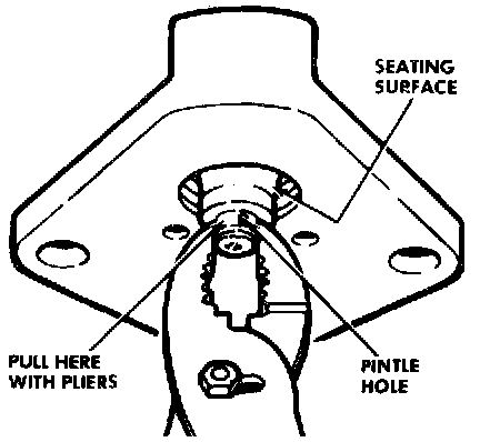 NOTE: If pintle seat is difficult to remove, rock fore and aft to overcome tightness due to factory staking.