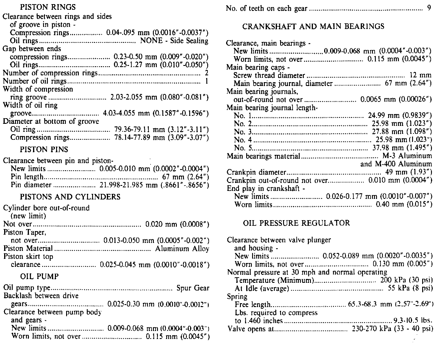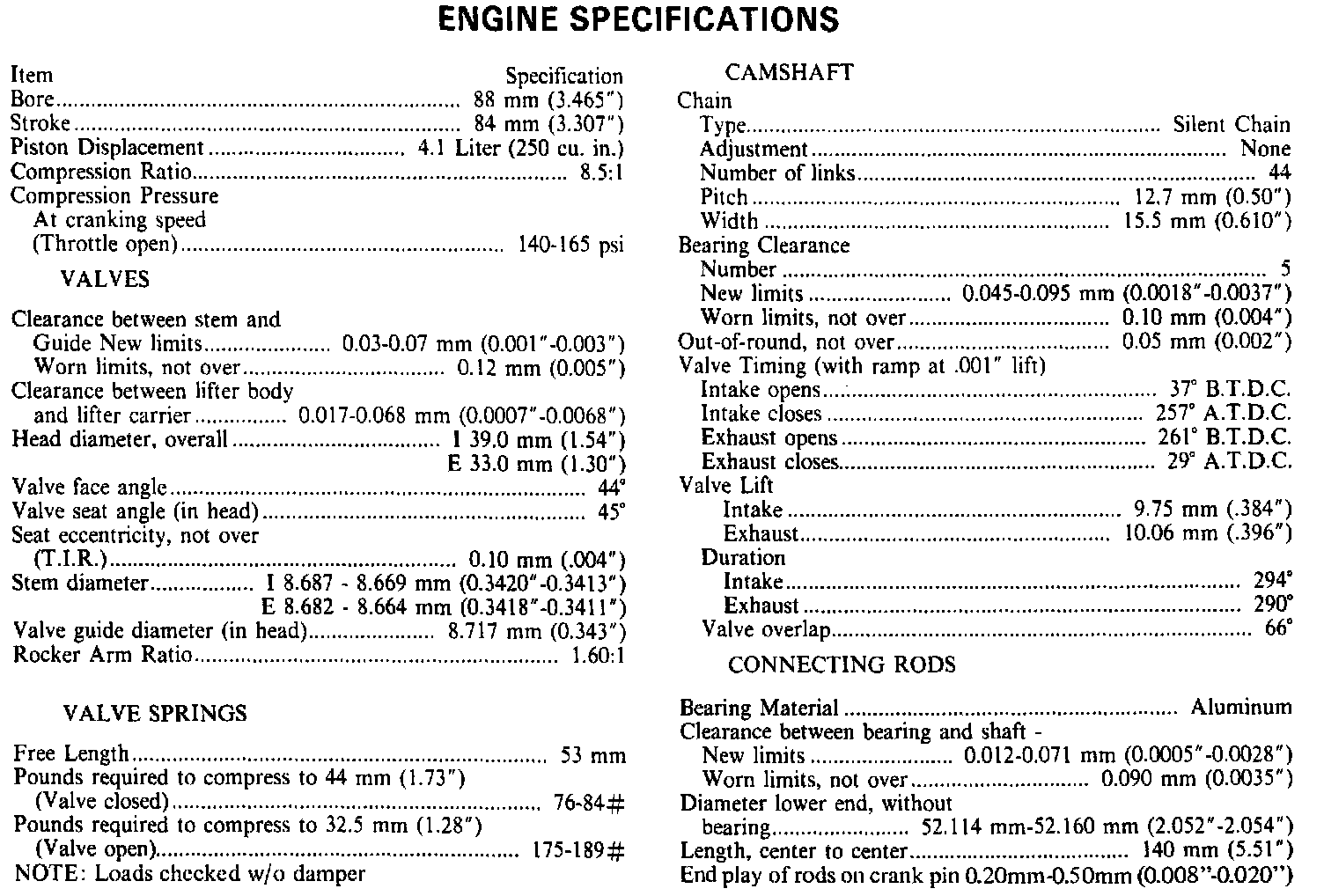 Engine Specifications: