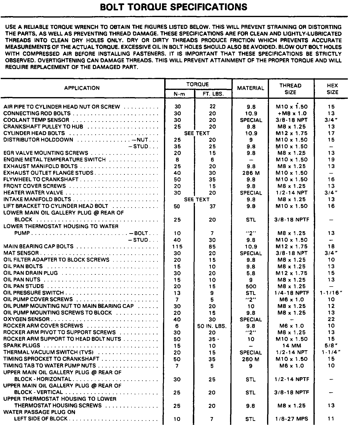 Torque Specifications: