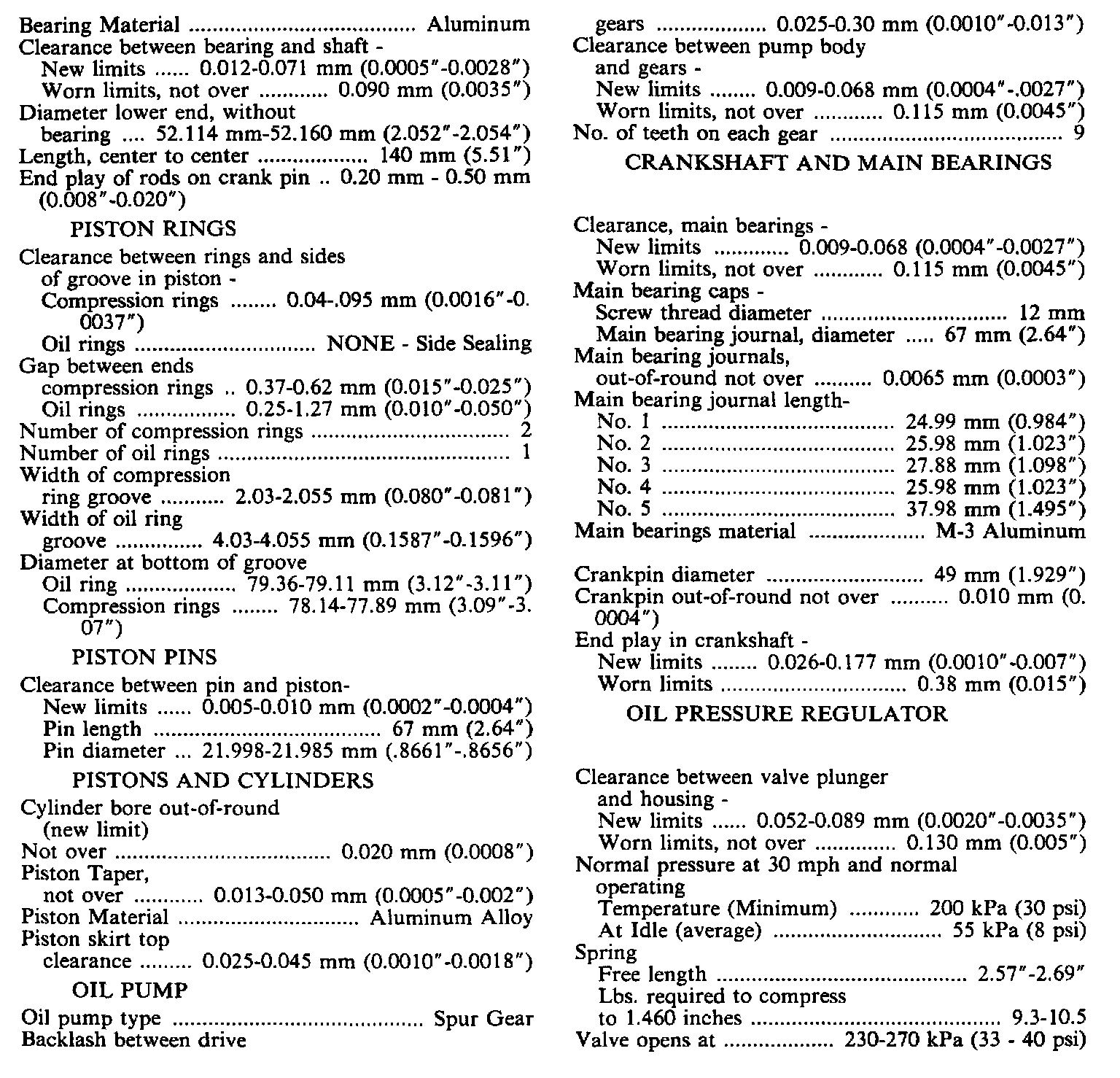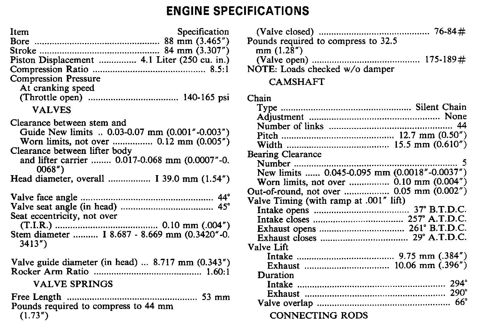 Engine Specifications: